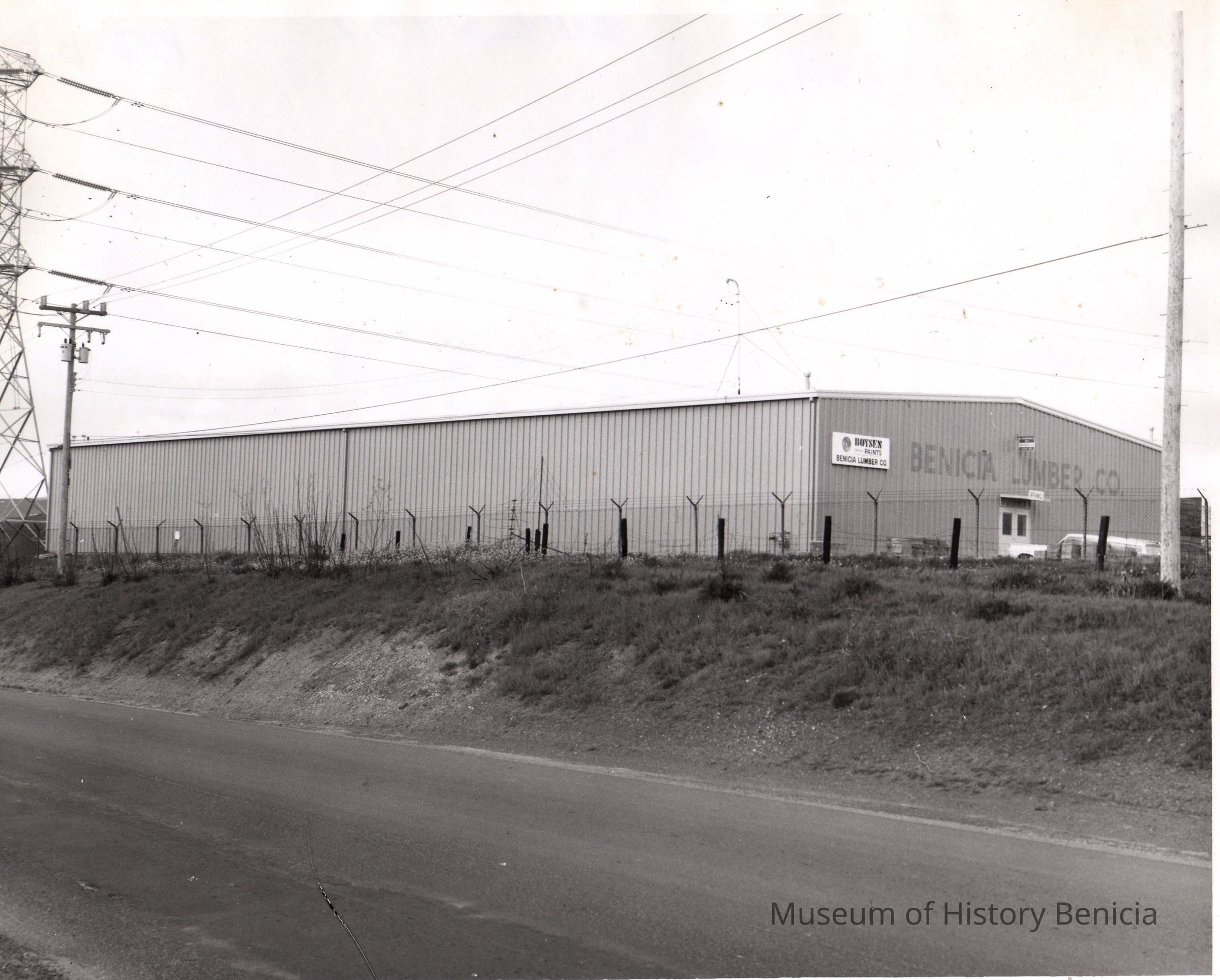 B/W photograph: one of a set of four showing various views of Benicia Lumber Company, built on Benicia Arsenal property west of East Second Street.Collection