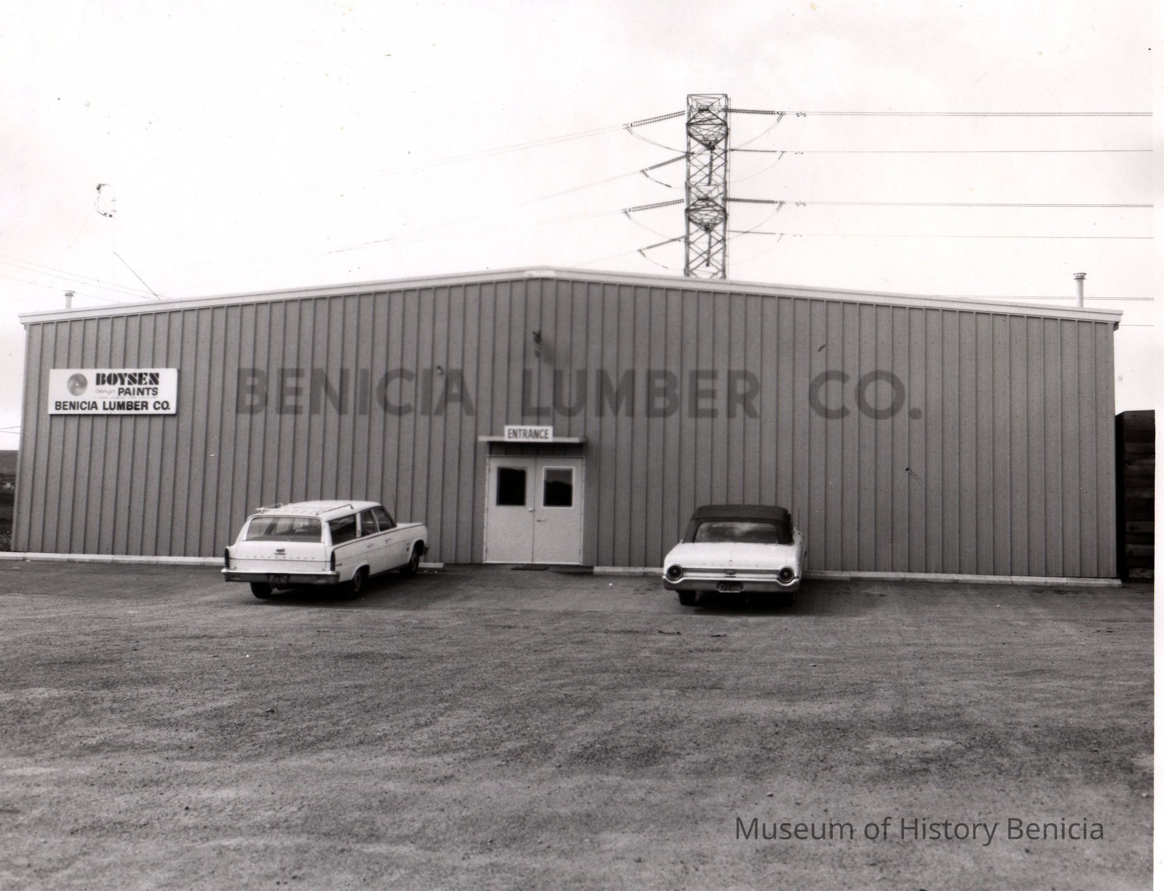 B/W photograph: one of a set of four showing various views of Benicia Lumber Company, built on Benicia Arsenal property west of East Second Street.Collection