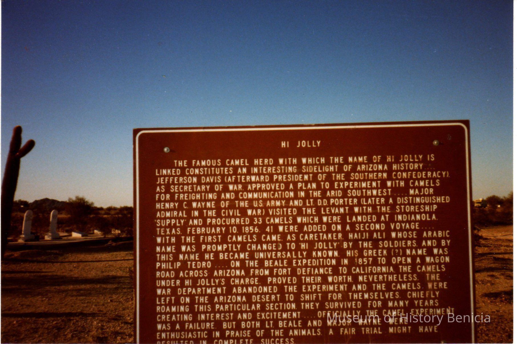 color photograph: another roadside information board for HI JOLLY in Arizona