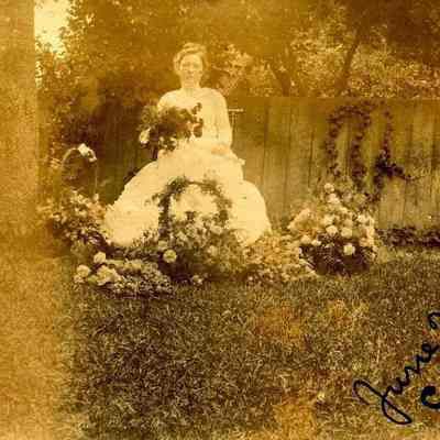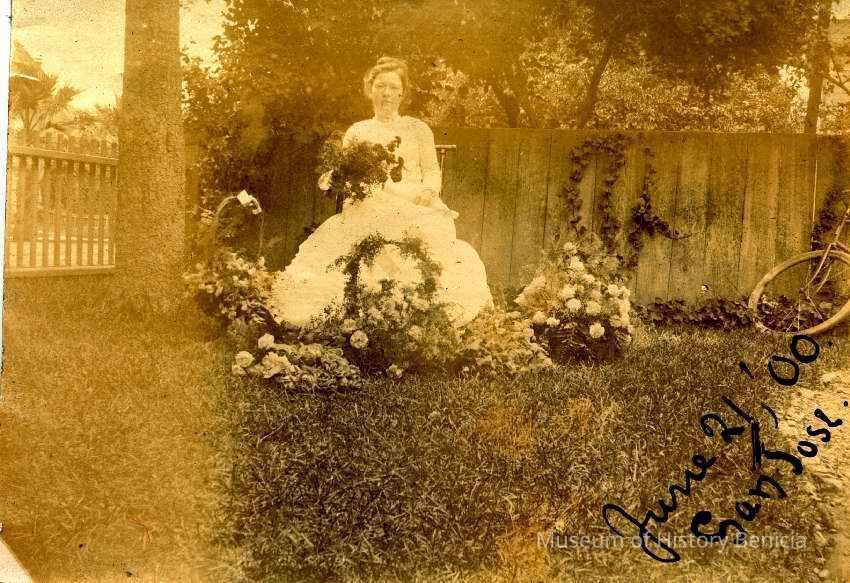 This photo of a woman with flowers says it was taken 06/21/1900 in San Jose, CA