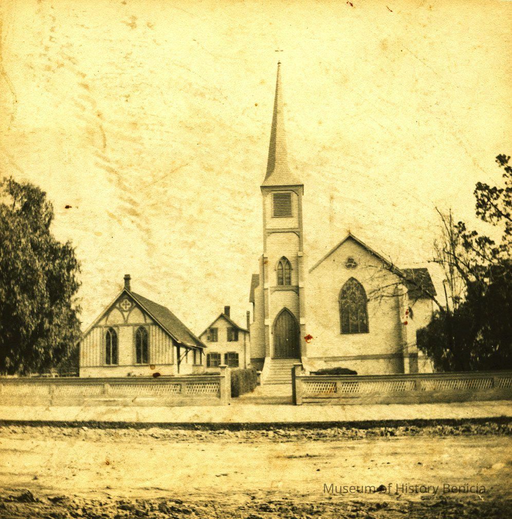 Inscription. Founded September 24, 1854, with the first service conducted by lay reader Major F. D. Townsend, U.S. Army, in the "Old Capital Building", constructed from plans presented by Colonel Julian McAllister, of the Benicia Arsenal, in April 1859; Consecrated on February 12, 1860 by the Right Reverend William Ingraham Kip, D.D., First Episcopal Bishop of California; The Cathedral of the Missionary District of Northern California, 1874 - 1899. Under the Right Reverend J.H.D. Wingfield, D.D., First Episcopal Theological Seminary in the West, of Saint Augustine's School for Boys, of Saint Mary's of the Pacific for Girls, under Dean James Lloyd Breck, D.D. Served through the century by loyal clergymen and lay persons for the Glory of God and his Kingdom.Collection
