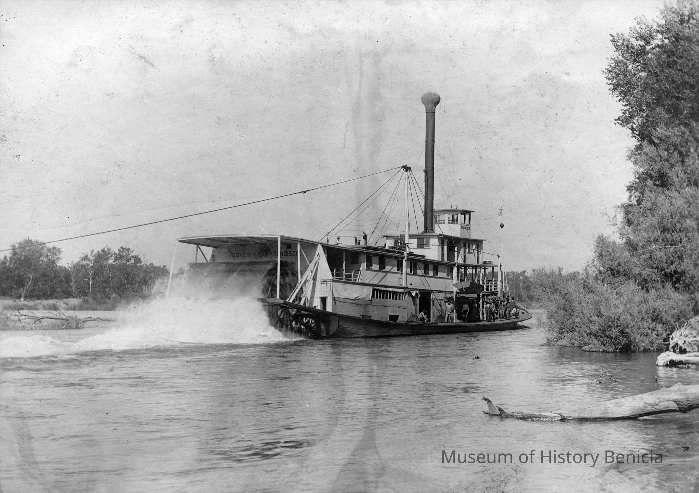 Photo from album page. Steam boat on a river. Caption reads, "Steamer Valetta on first trip". It is possible that boat was actually called the Valletta.Collection