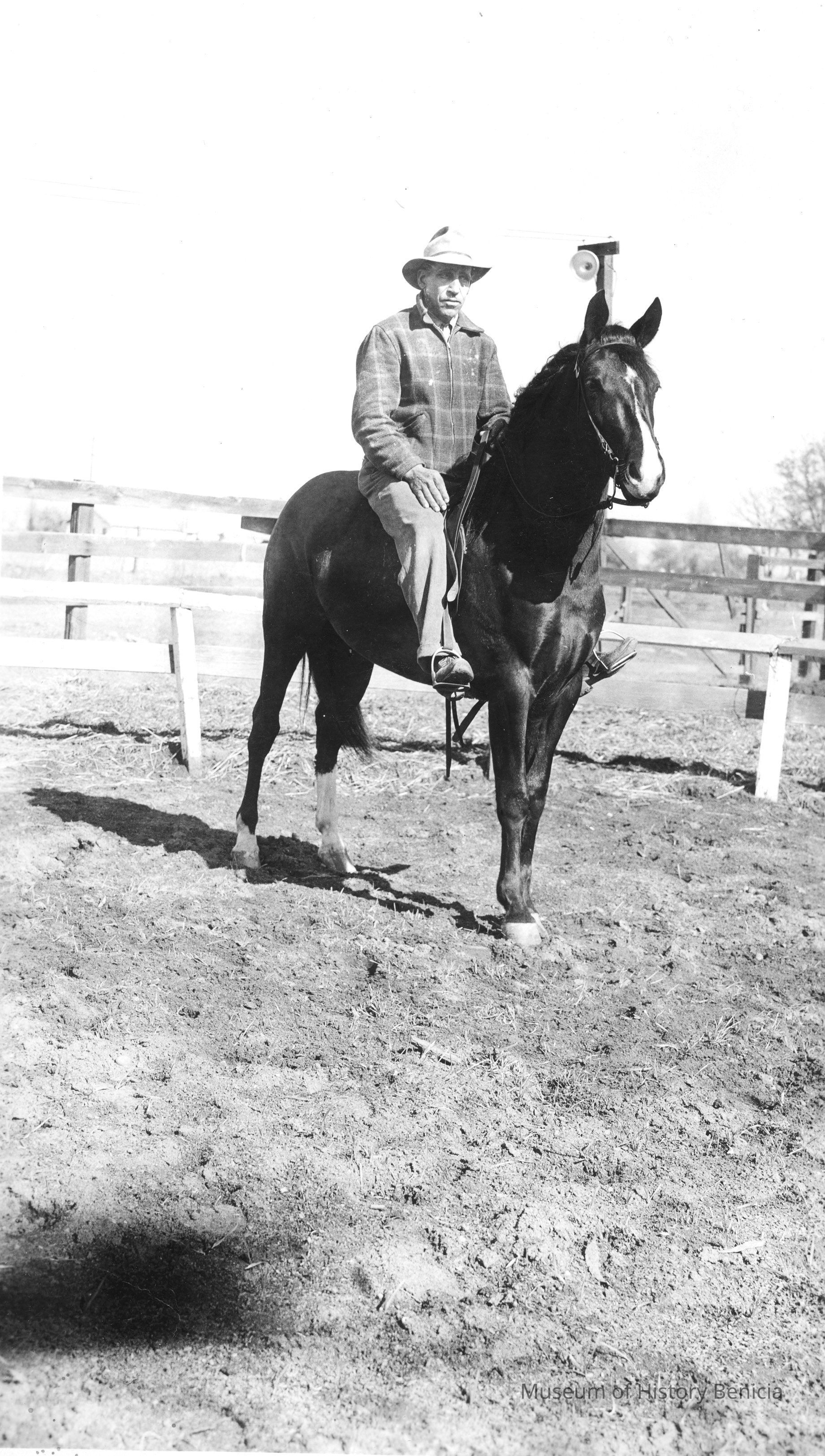 Photograph of a man training a horse. Taken at The Pines in Bass LakeCalif.