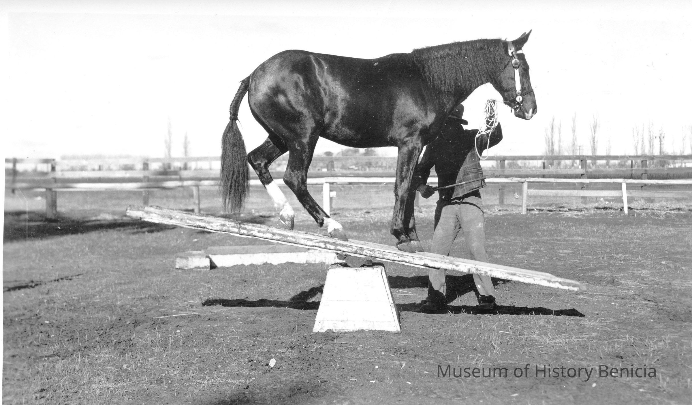 Photograph of a man training a horse. Taken at The Pines in Bass LakeCalif.