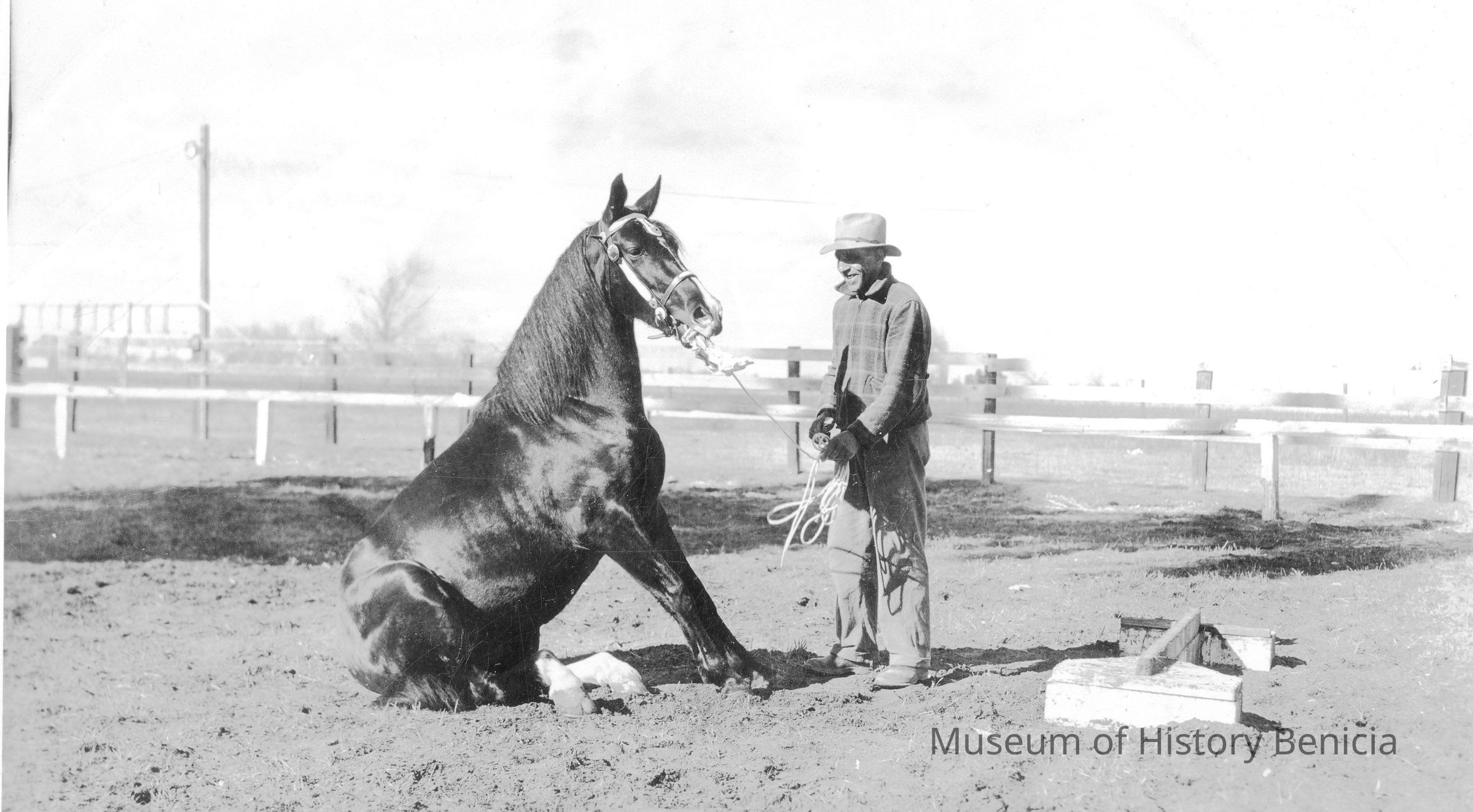 Photograph of a man training a horse. Taken at The Pines in Bass LakeCalif.