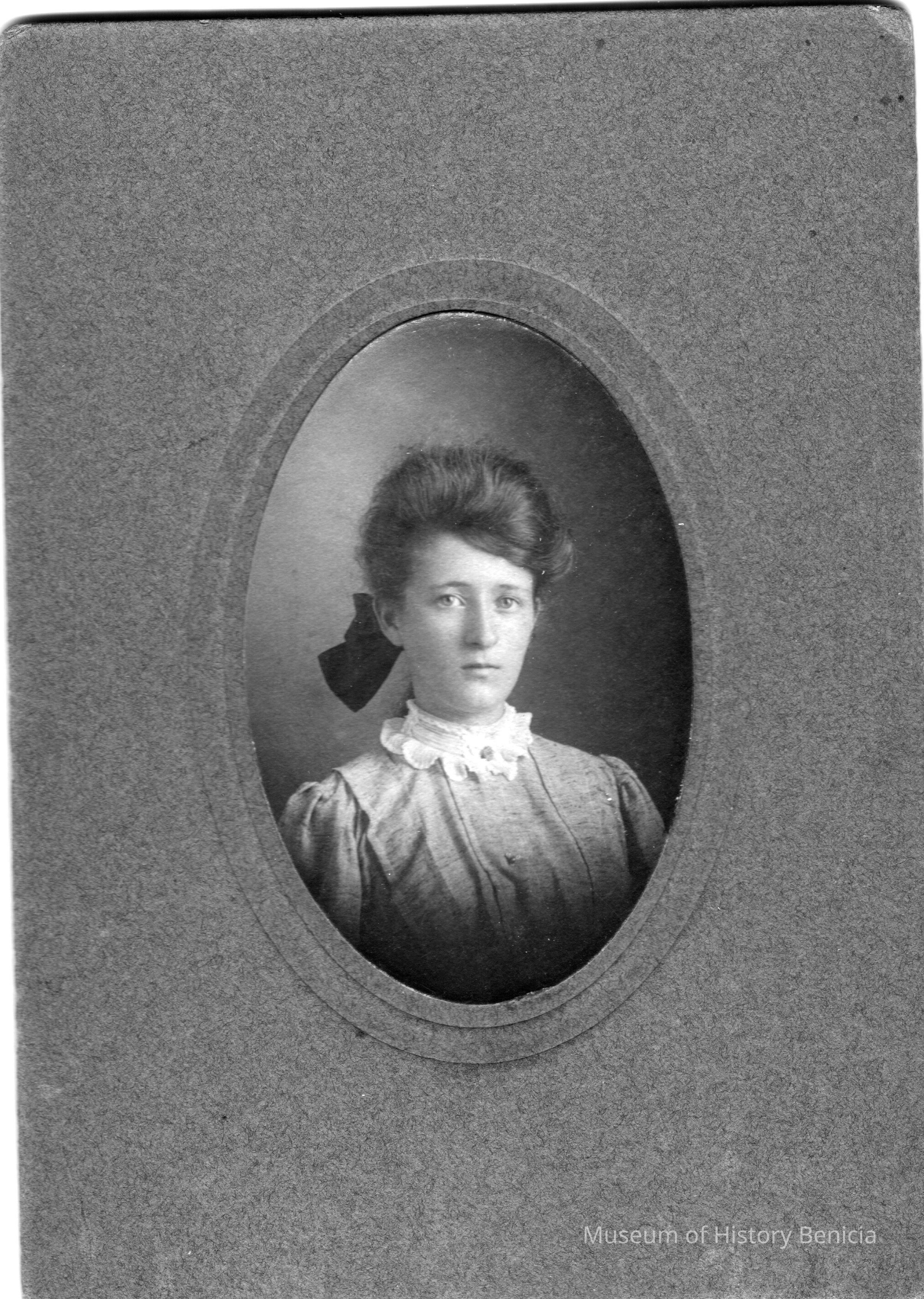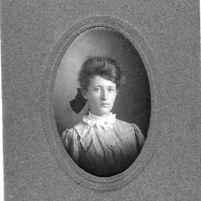 Framed portrait photo of a woman. In a cardboard mount.