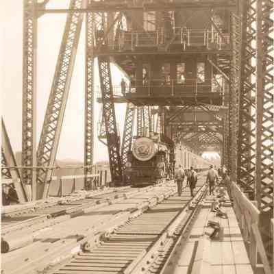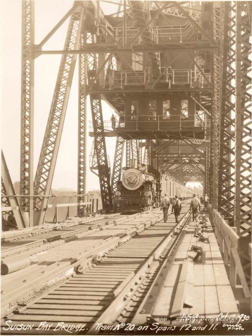 caption is: Suisun Bay Bridge Train No20 on spans 12 and 11