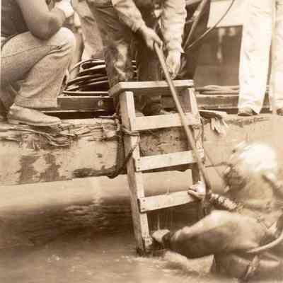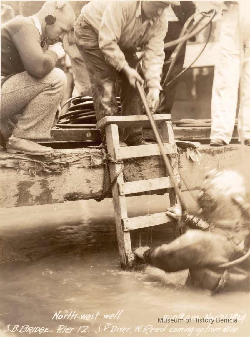 caption is: Suisun Bay Bridge Pier 12 SP Diver W Reed coming up from dive