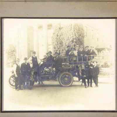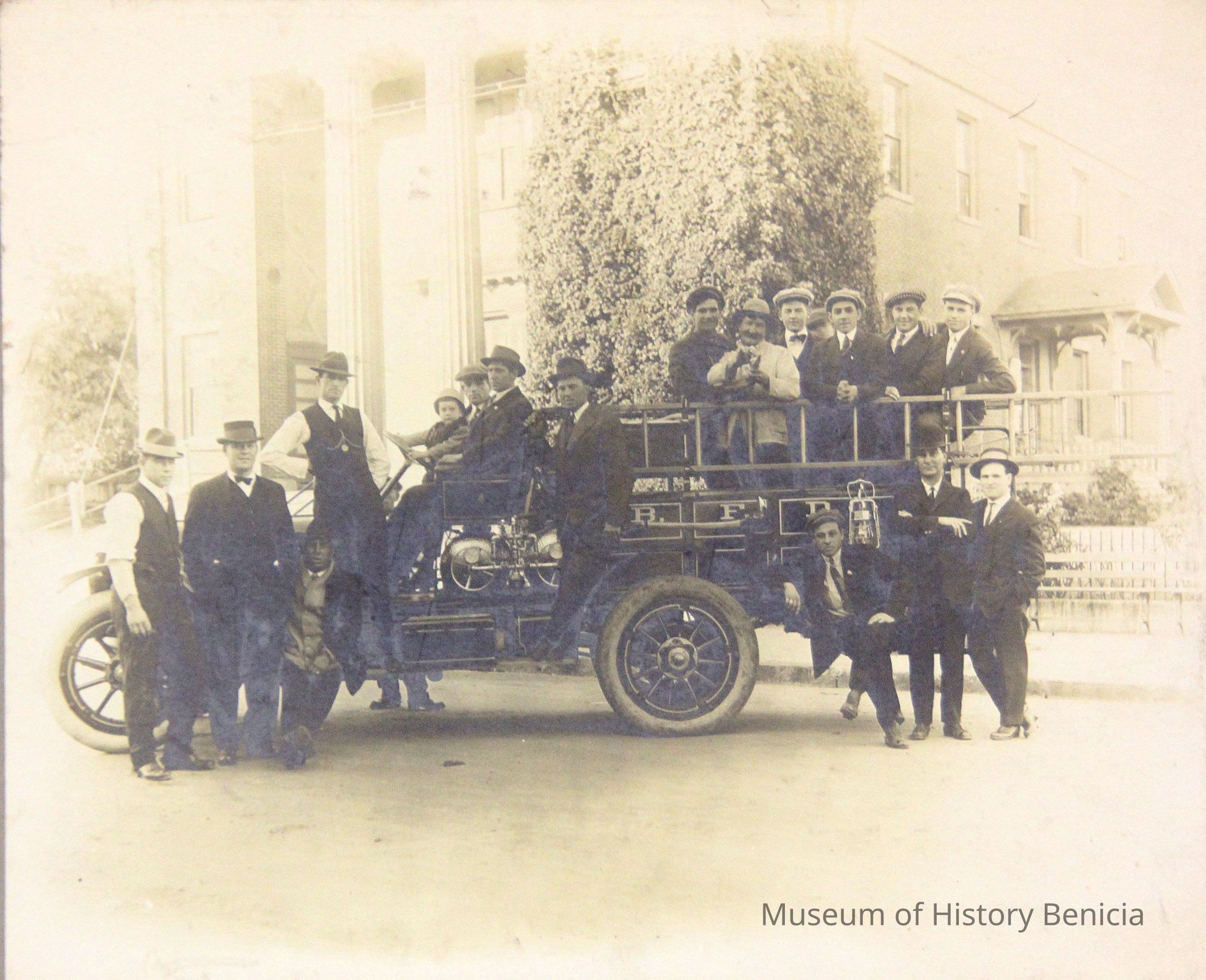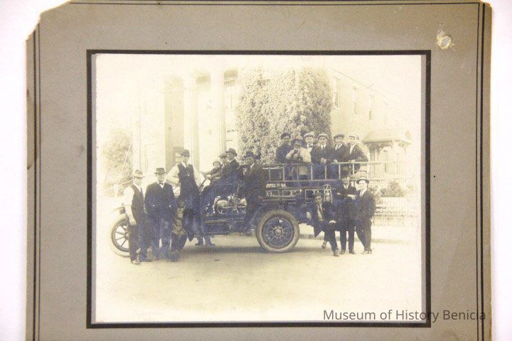 Photo of Benicia fire truck and Benicia volunteers. Taken in front of State Capitol. We also have the negative of this photo taken by John Molfino.Collection