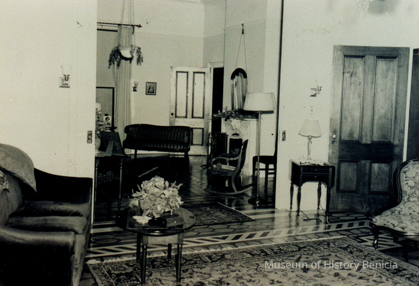 B/W photograph furnished interior room of the Commanding Officer's Quarters Benicia Arsenal