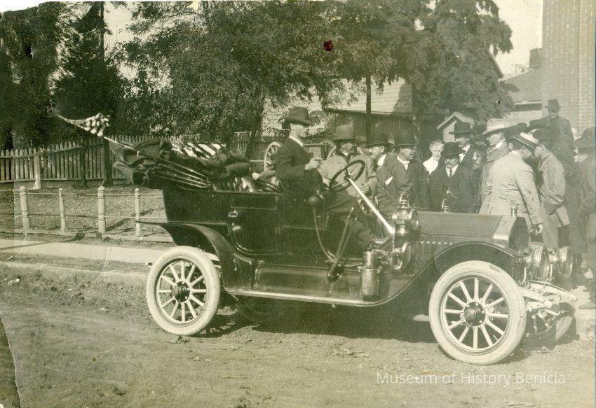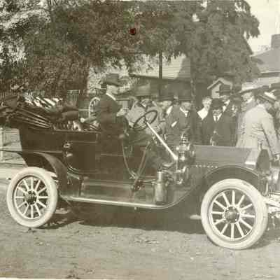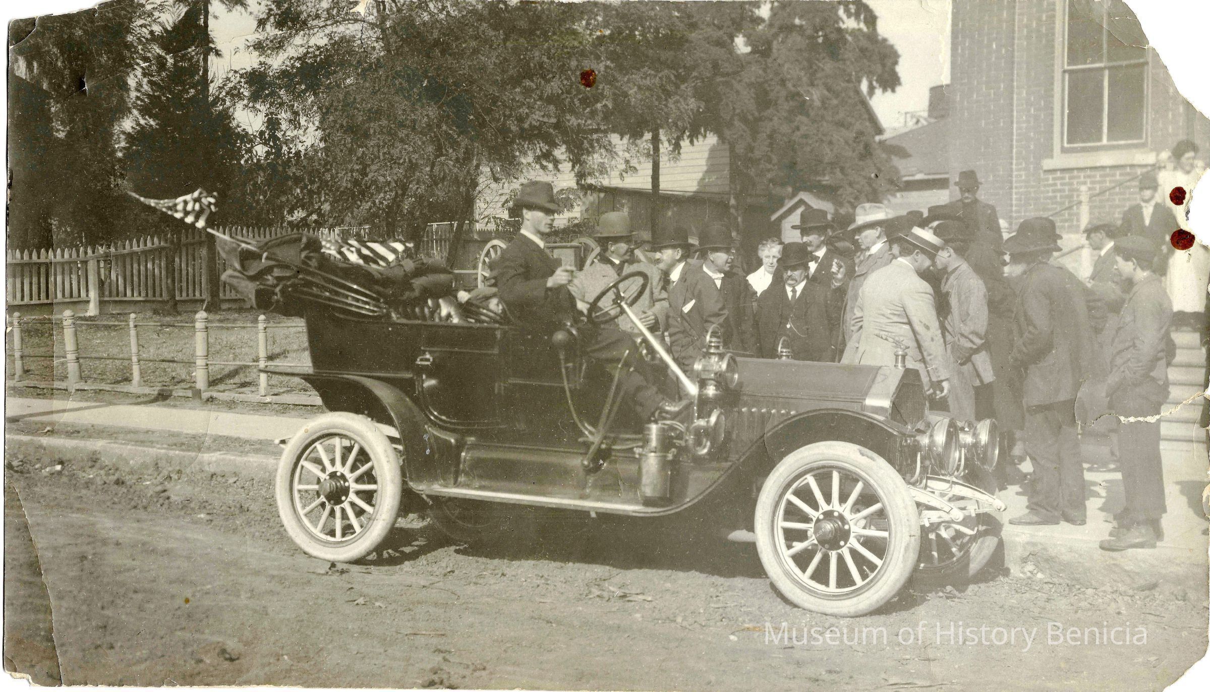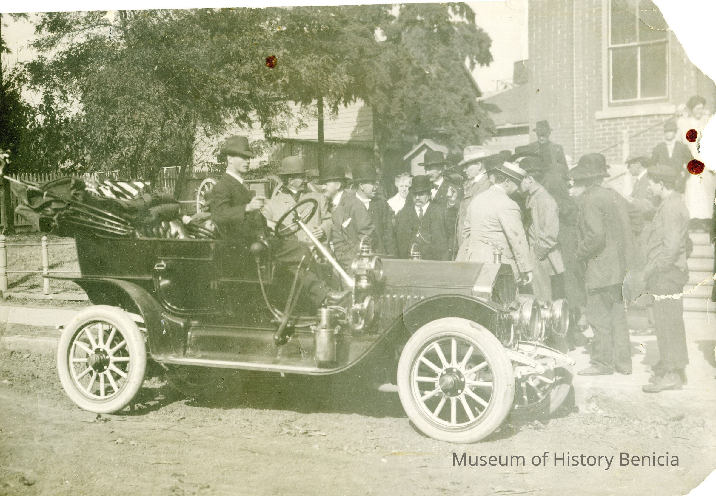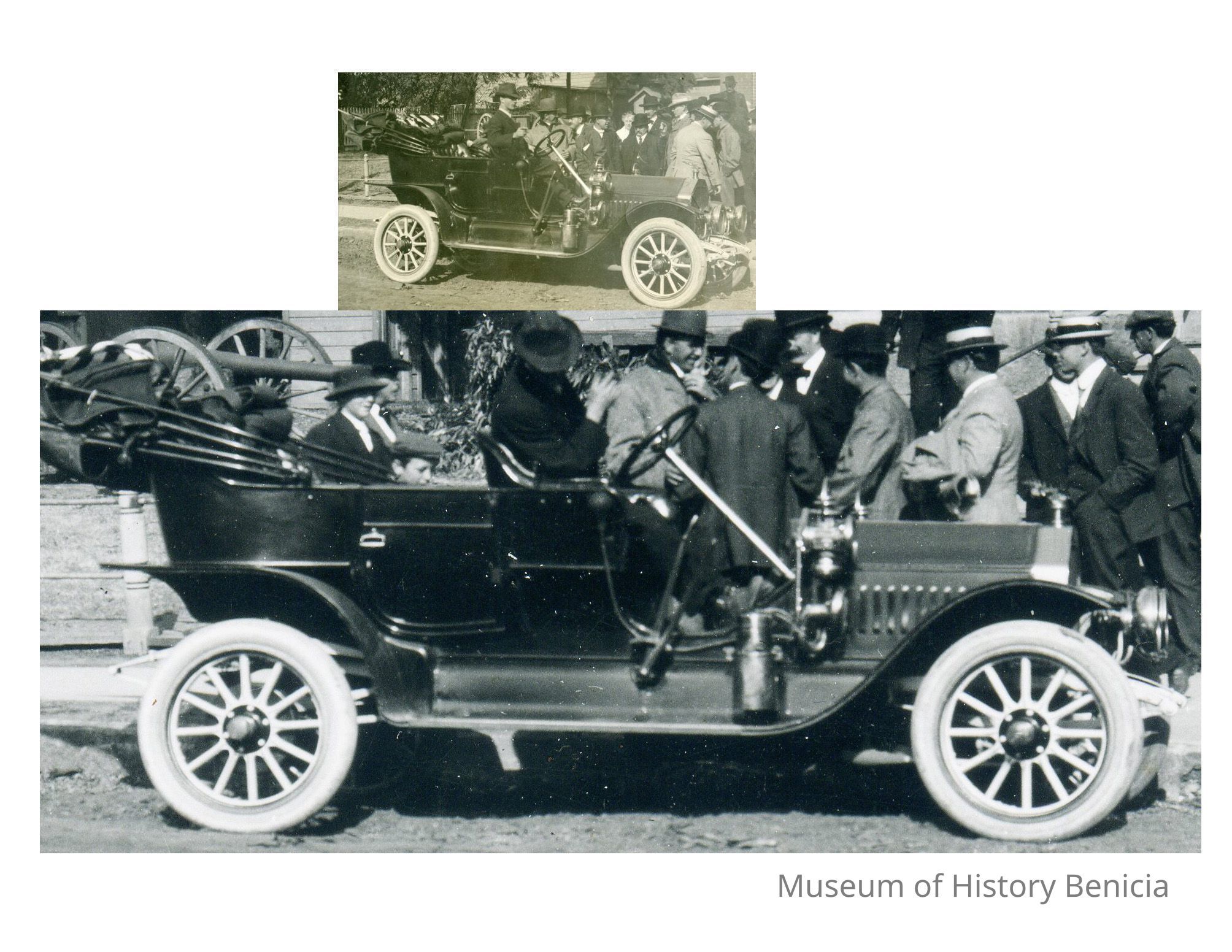 This same car is in record 2004.011.0026 and is said to belong to A.K. Salz. In 1913 in the Sacramento newspaper Chas. Clyne is shown as registering a Regal automobile. This car looks very similar to the Regal automabiles shown in early car ads.Collection