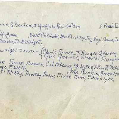 2nd row: unk, F Hoffman, unk, Violet Chisholm, Mrs Oust, Mr Fry, Hazel Brown, Jack Johns, M Coleman, Mrs Jack McClain, J Wassmann, Dr A Blodget,