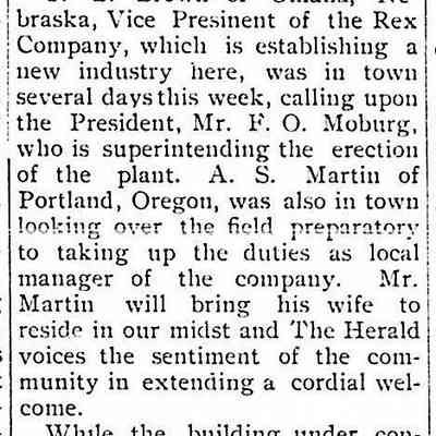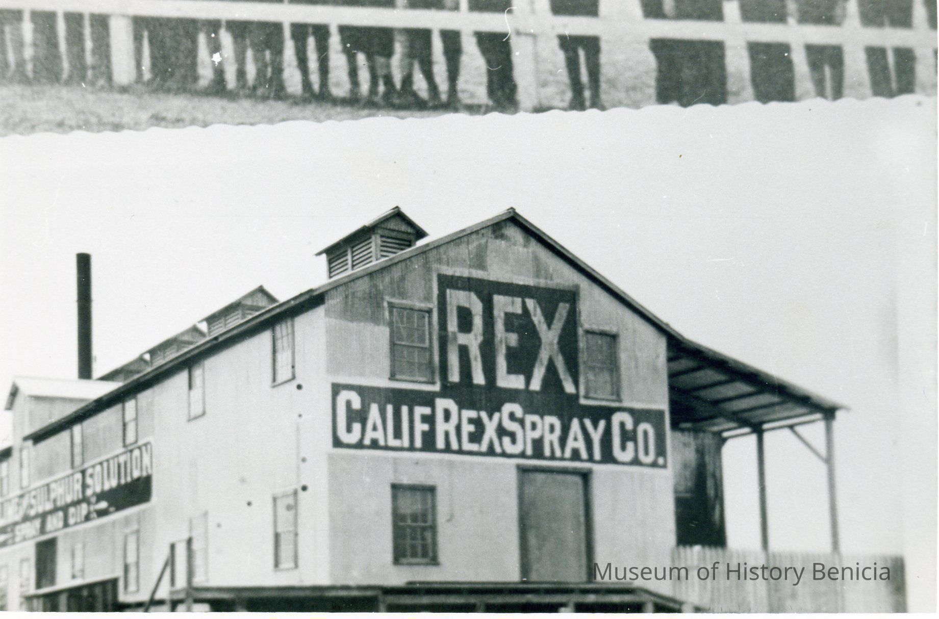 Photo of Rex Spray Co. It looks like the copy photo picked up the feet of people in another photograph. (Attached is a newspaper clipping from the Benicia Herald at the time the Rex Spray Co. started in Benicia.)Collection
