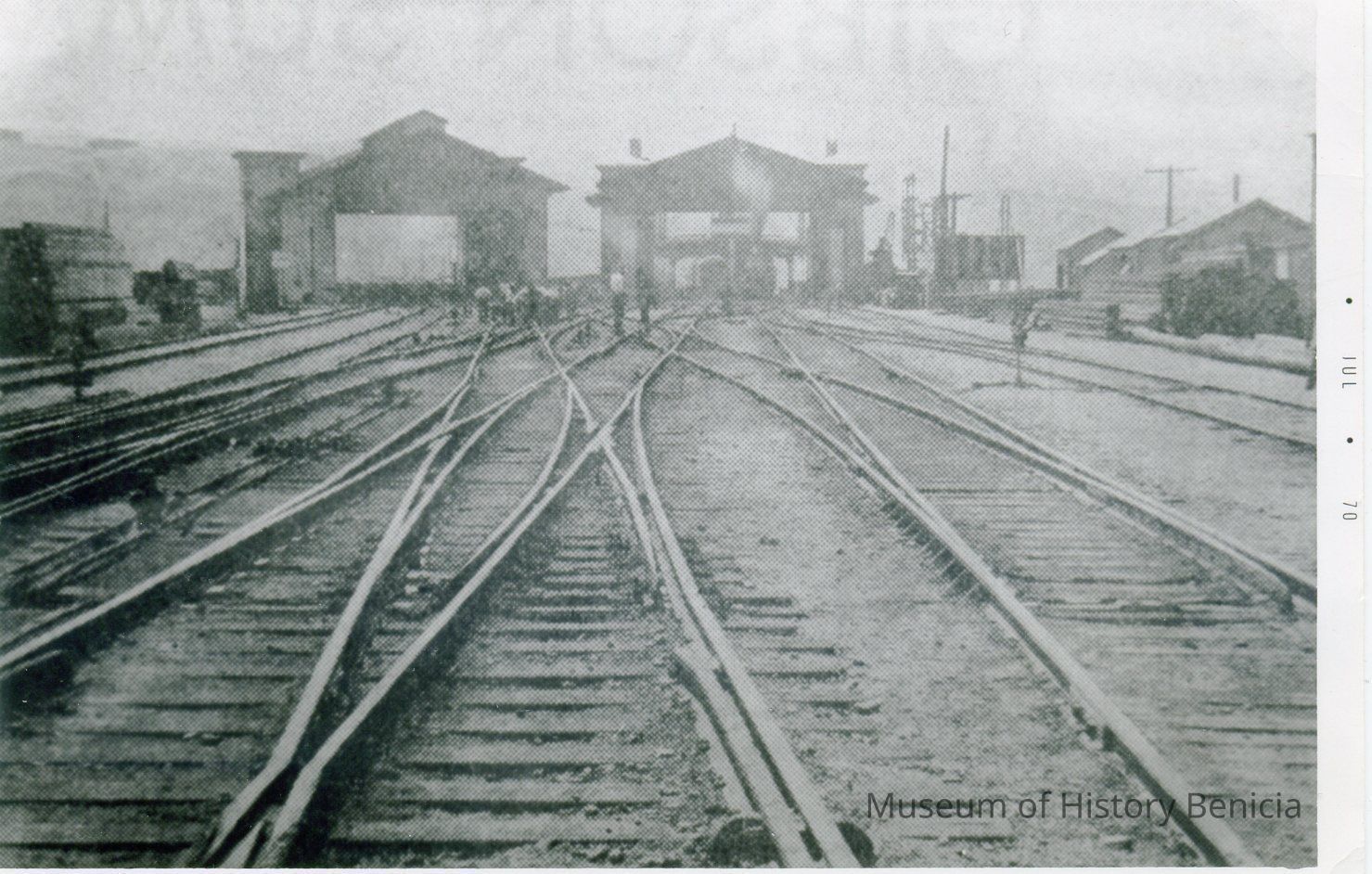 Photo of train tracks at foot of First St leading to where they were loaded onto the ferry boats. This is a bad copy of an original photo. The copy was done in July 1970.Collection