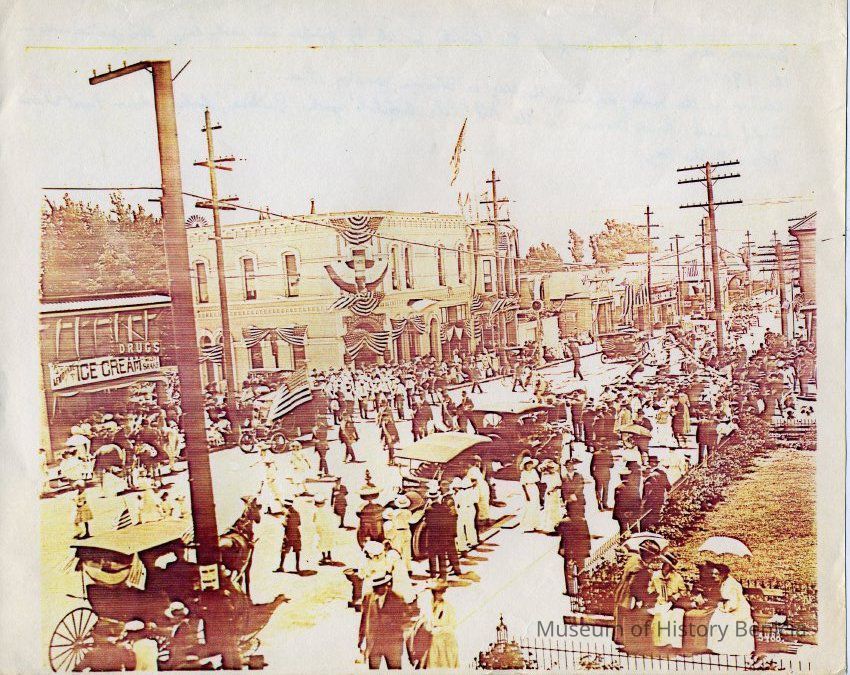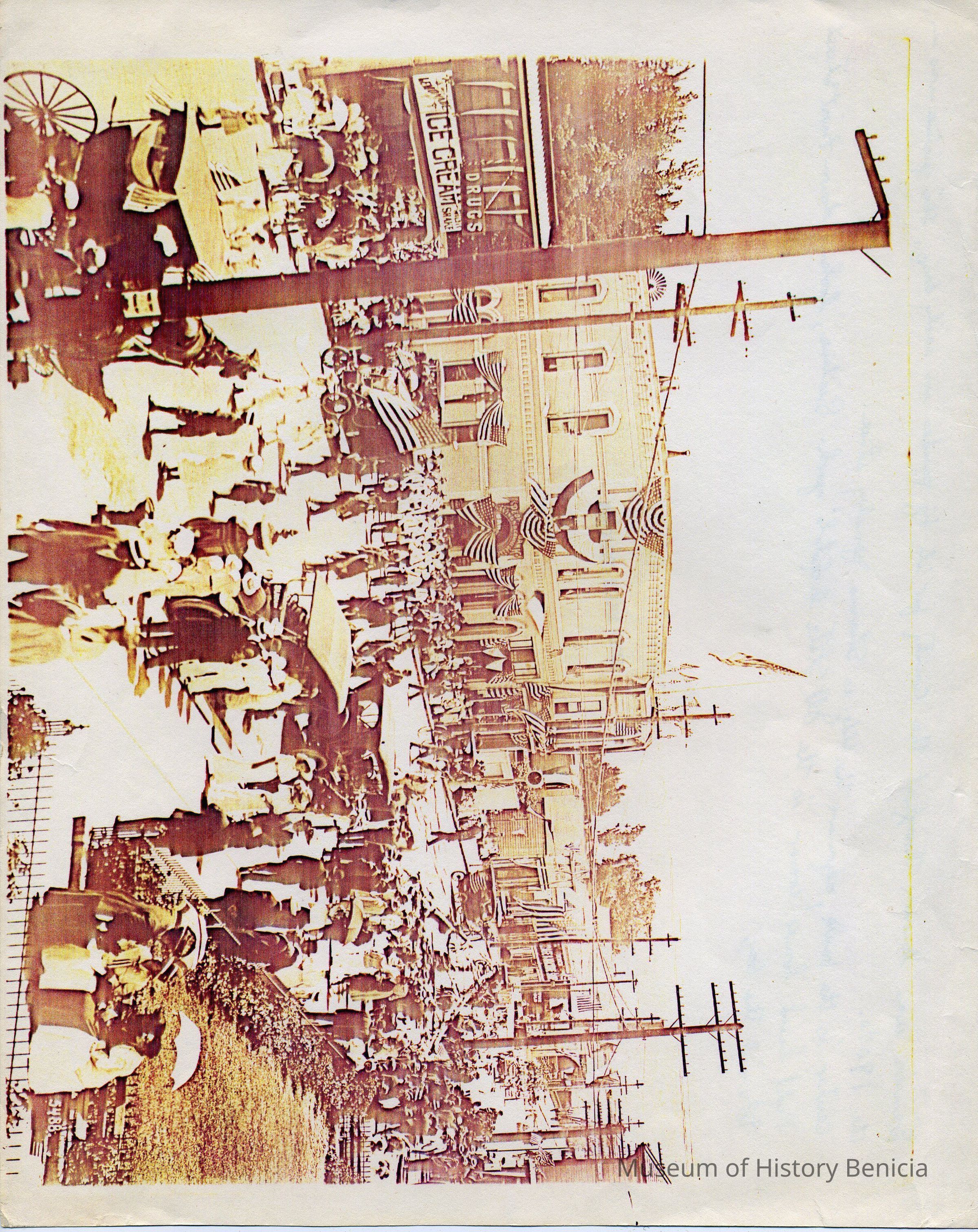 Photocopy of an old photo of Benicia 4th of July parade. On the back it says: