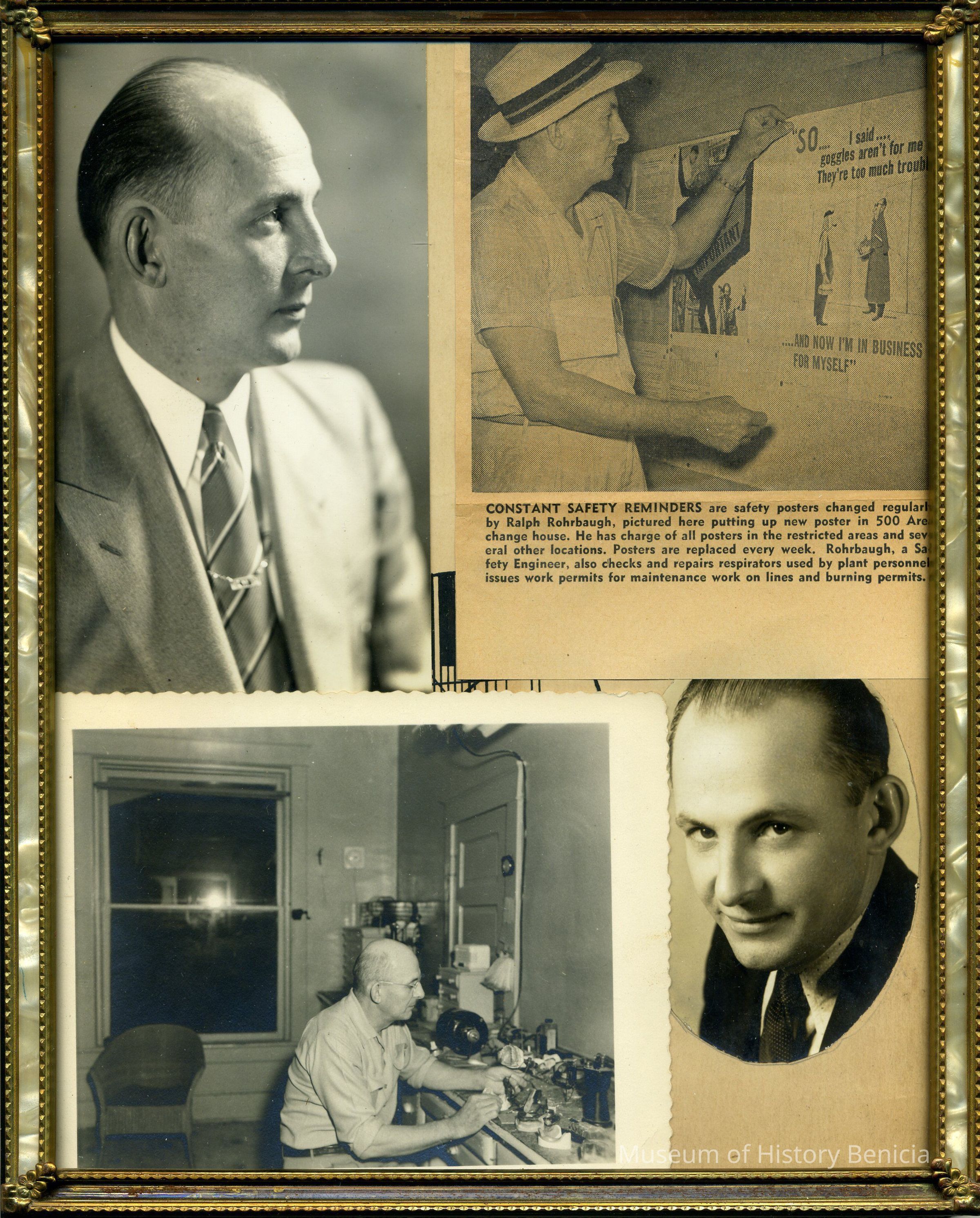 Framed set of four photographs of Ralph Rohrbaugh.