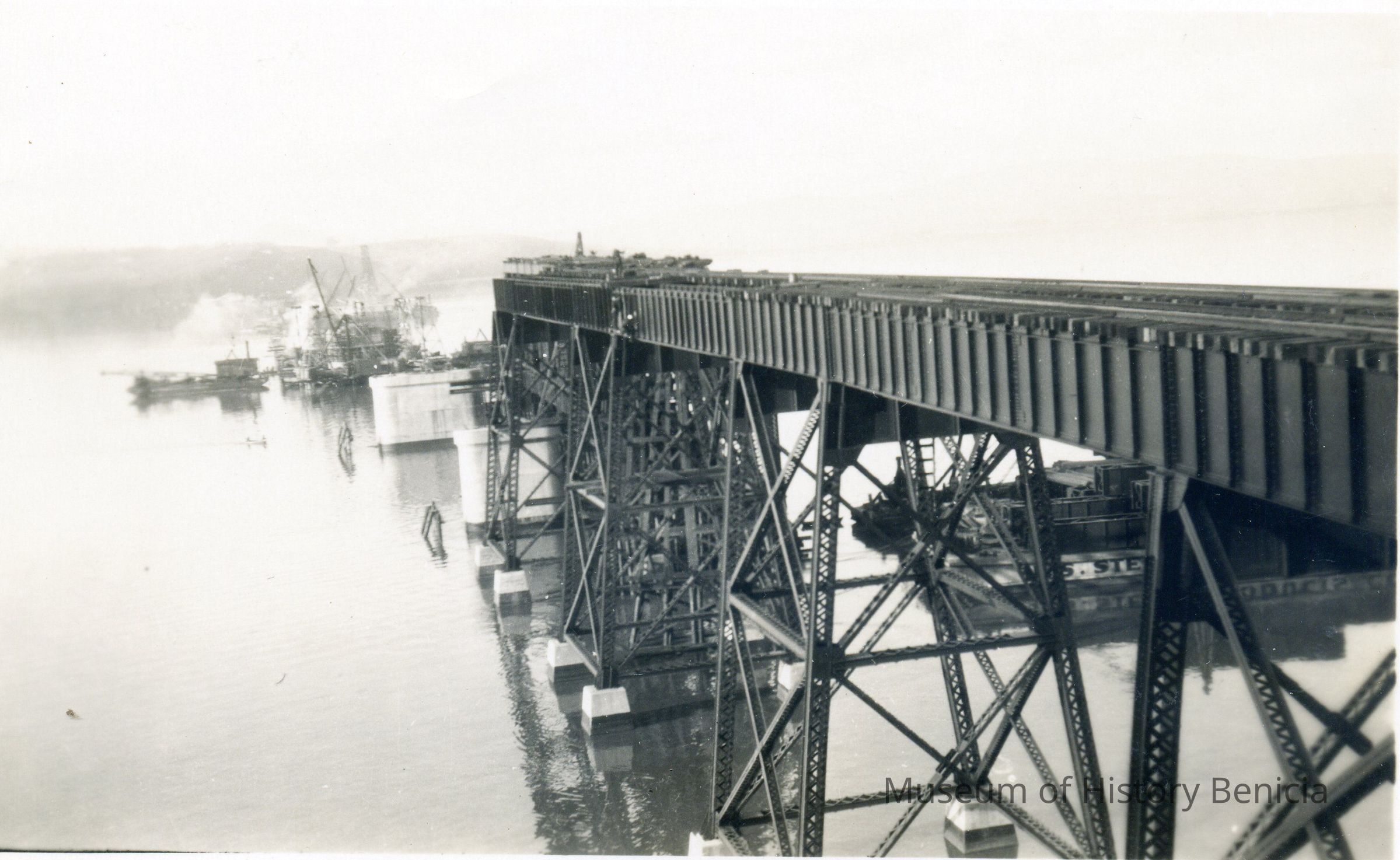 Photo of a tower used for the building of the Carquinez railroad bridge in 1930.
