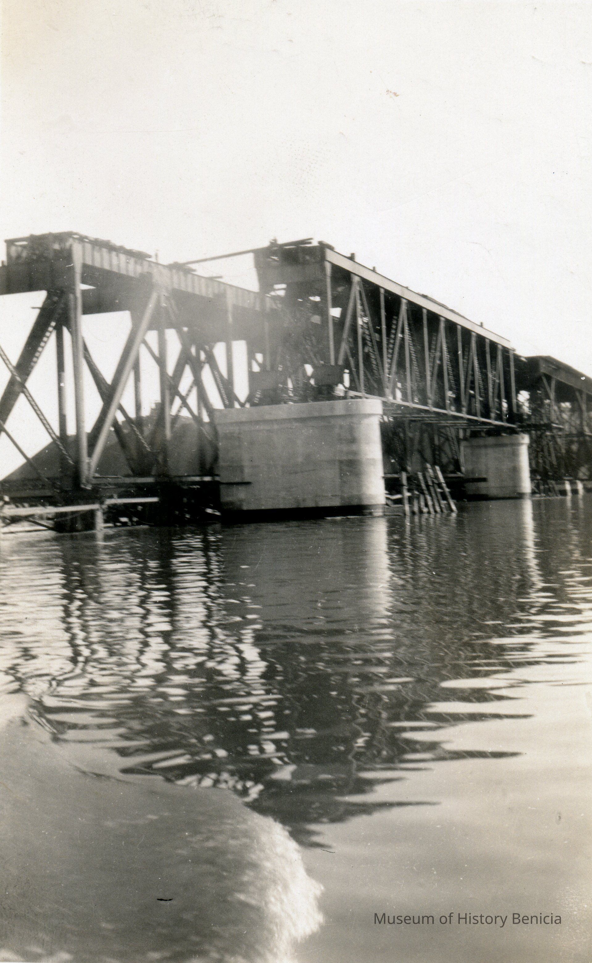 Photo of wide columns used for the building of the Carquinez railroad bridge in 1930.