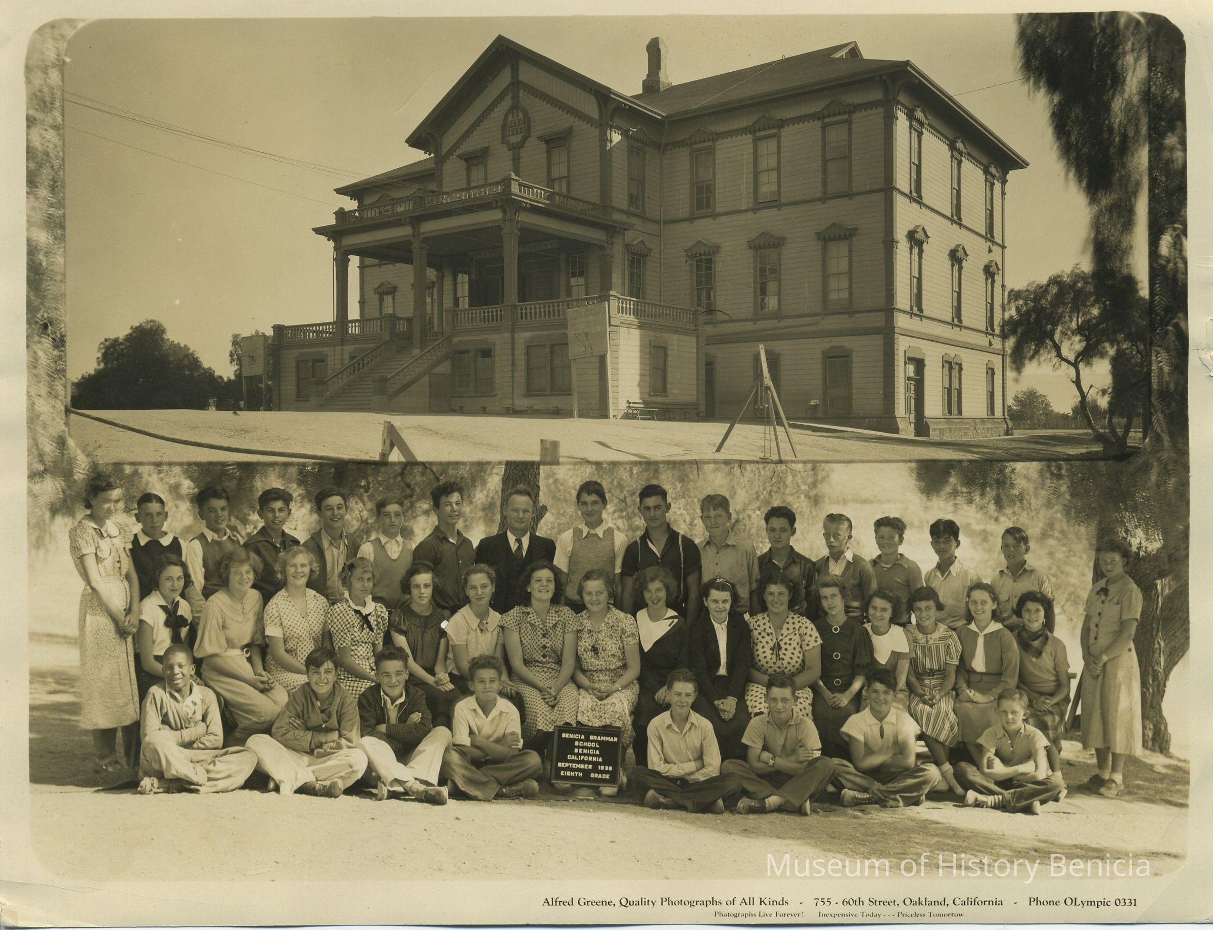 students are shown below a photograph of the old Benicia Public School BuildingCollection
