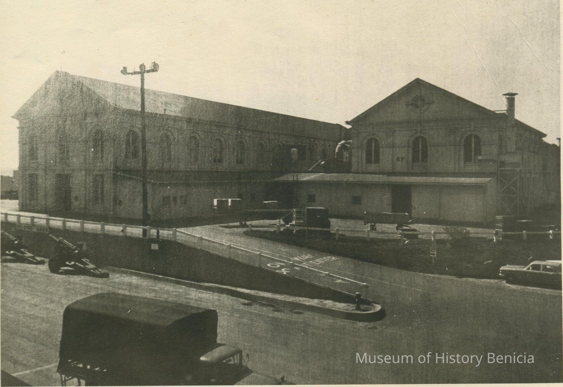 B/W photograph of Benicia Arsenal Shops built in 1857