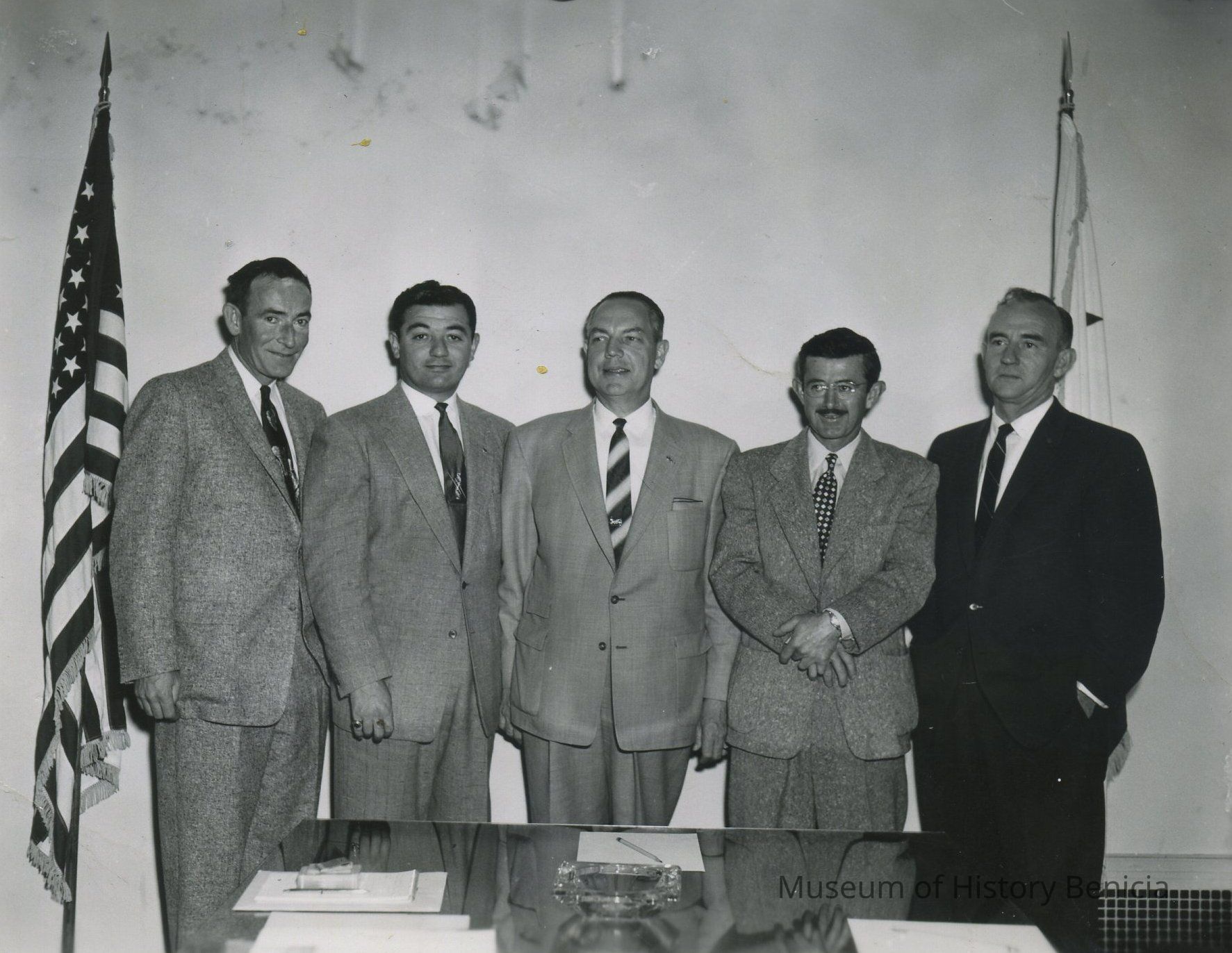 B/W Photograph of a group of gentlemen the purpose of which is unknown. Second from left is Bill Francis and fourth from left is Michael Walsh.Collection