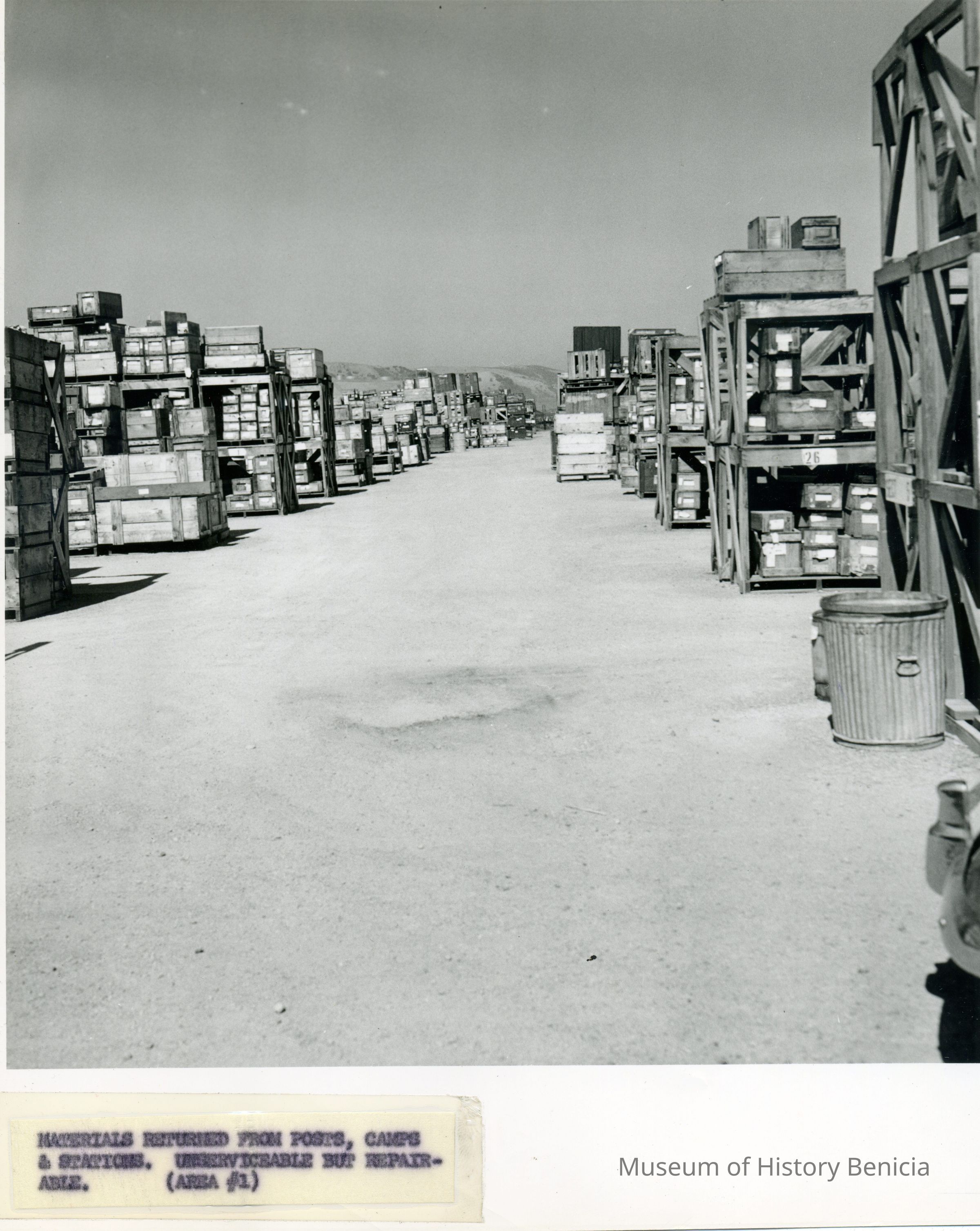 Photo from the Josephine Cowell research material. Shows materials returned from posts, camps and stations. Unserviceable but repairable (area #1).Collection