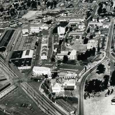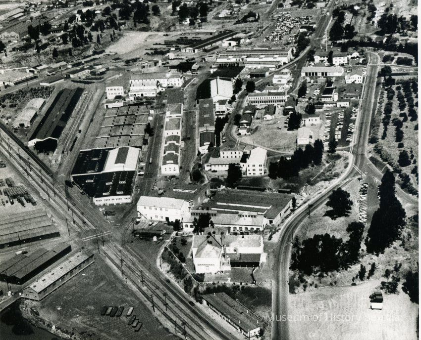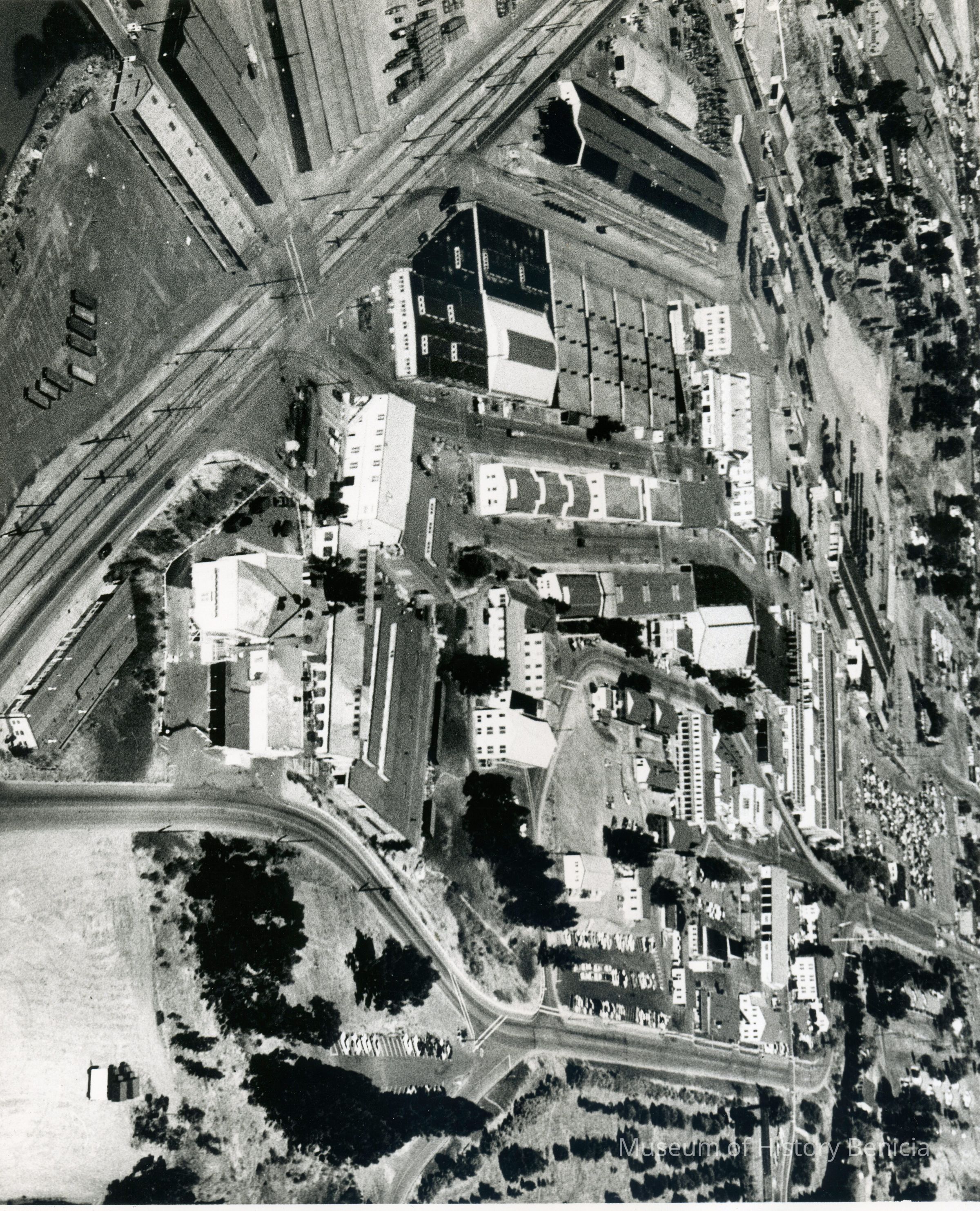 Photo from the Josephine Cowell research material. Shows an aerial view of the Benicia Arsenal.