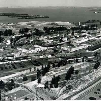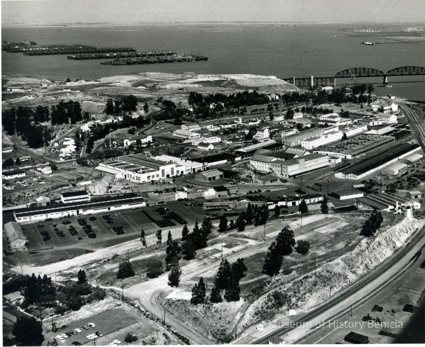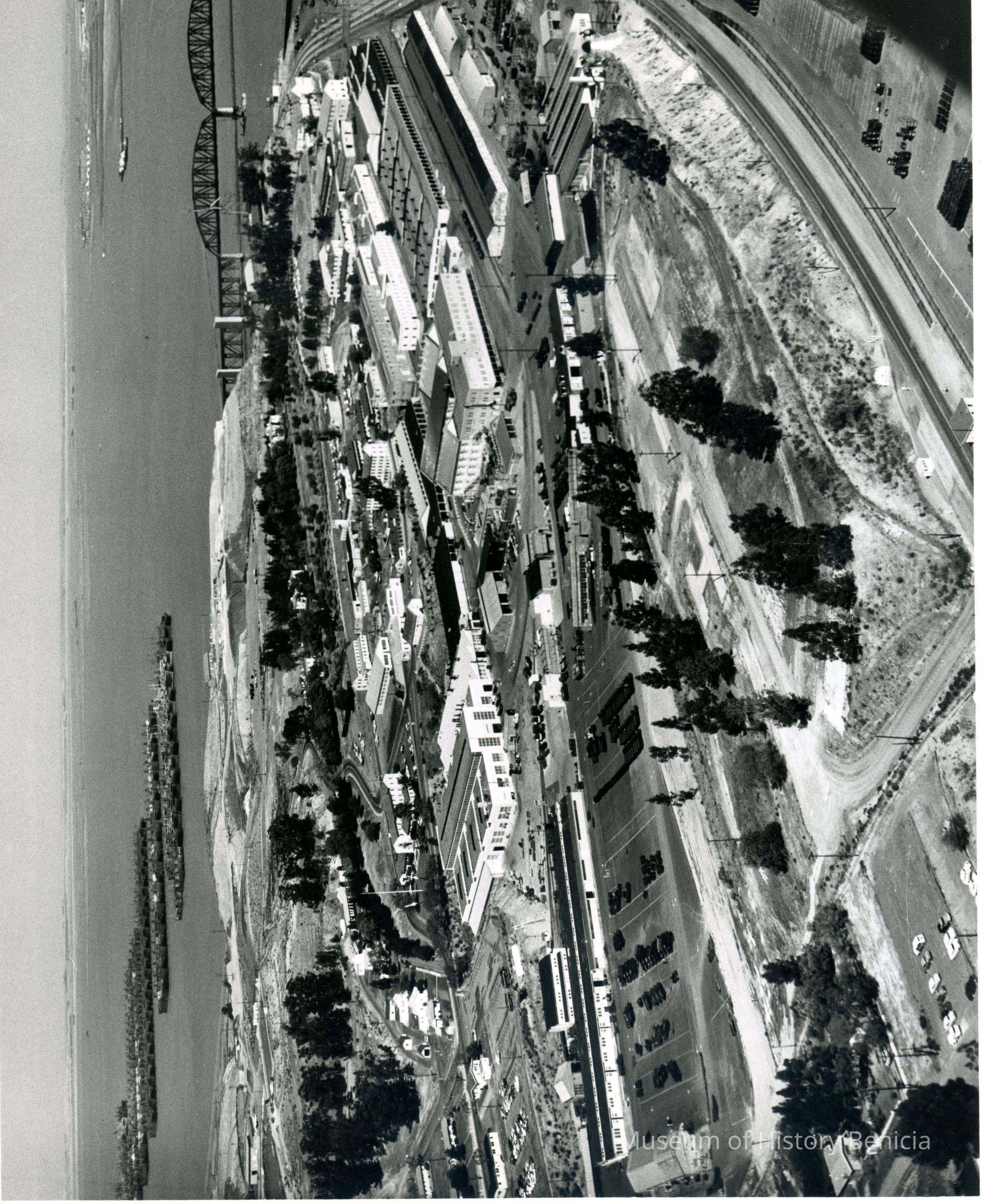 Photo from the Josephine Cowell research material. Shows an aerial view of Benicia Arsenal.