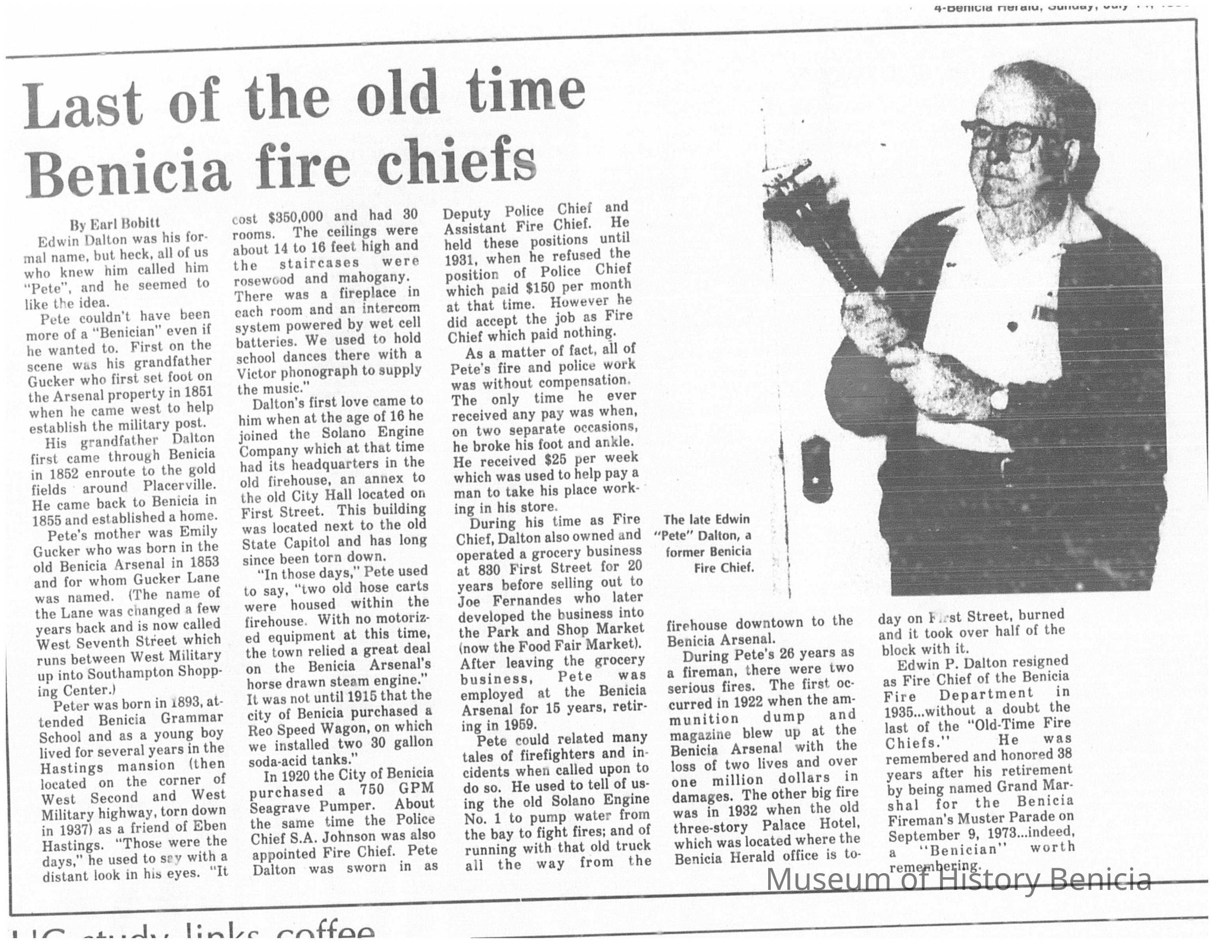 There is a newspaper article from the 07/14/1985 Benicia Herald on Ed Dalton also attached.Collection