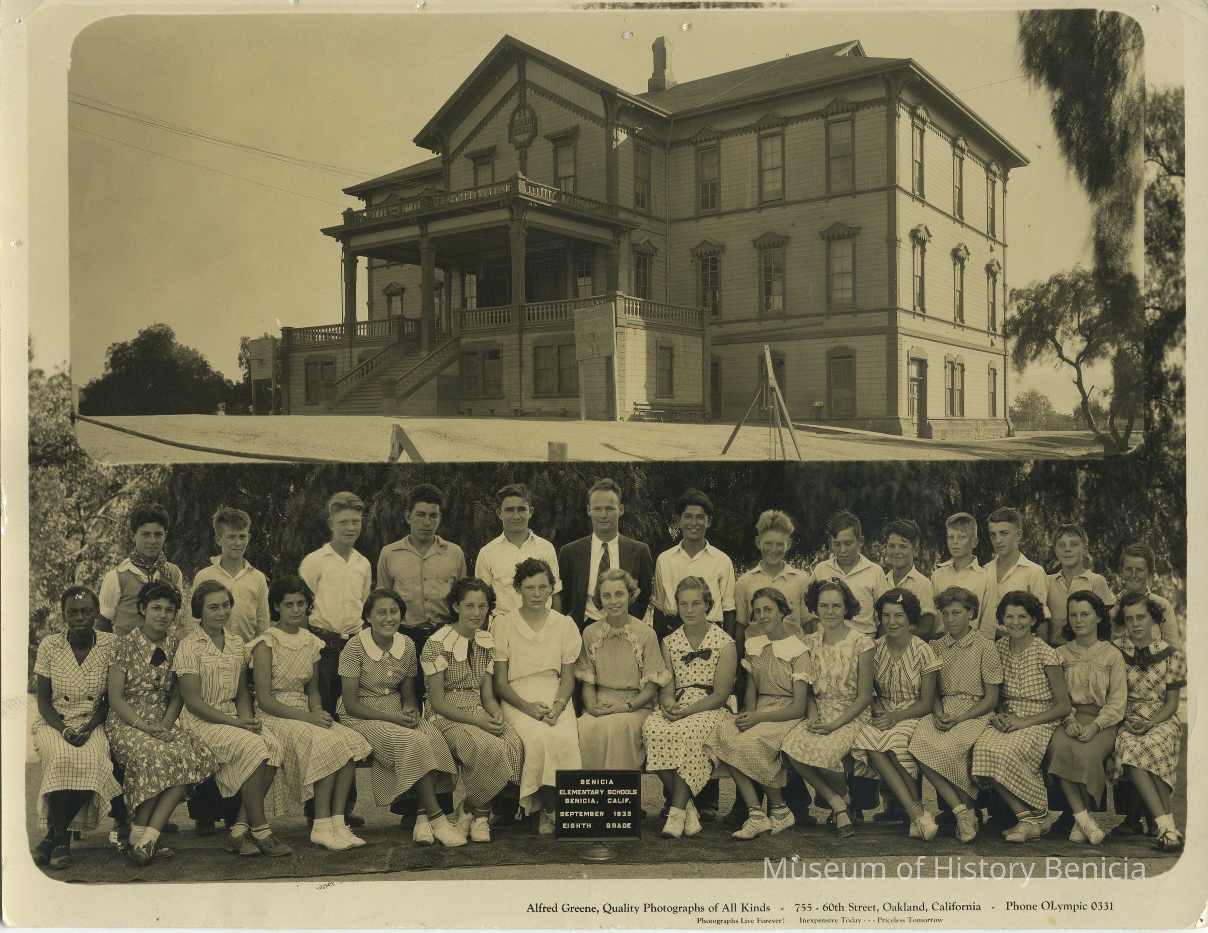 B/W photograph of Eighth grade class of Benicia Elementary School September 1935.
