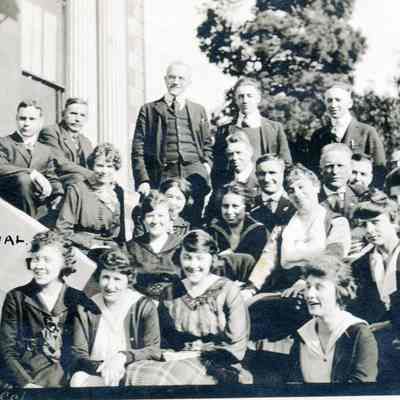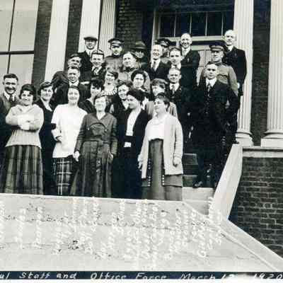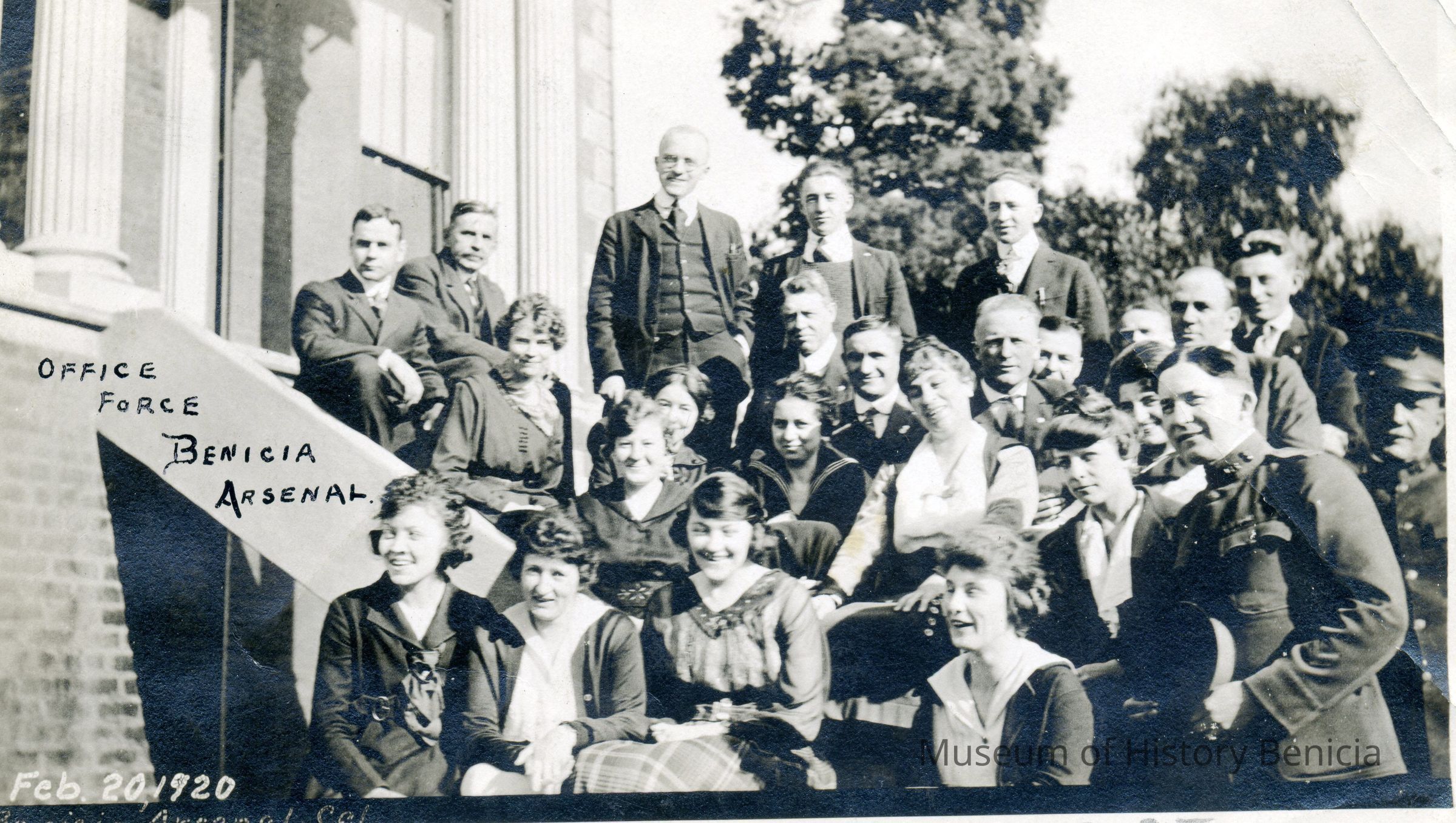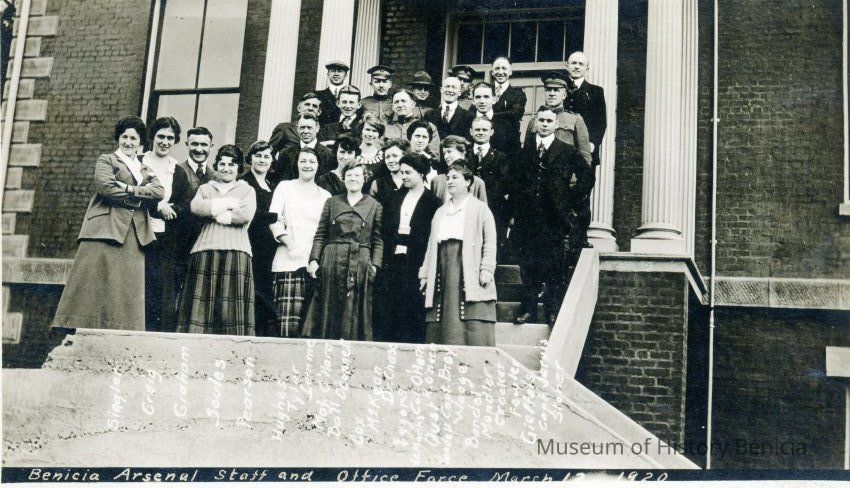 "D" Office Force Benicia Arsenal. Group standing on the steps.Collection