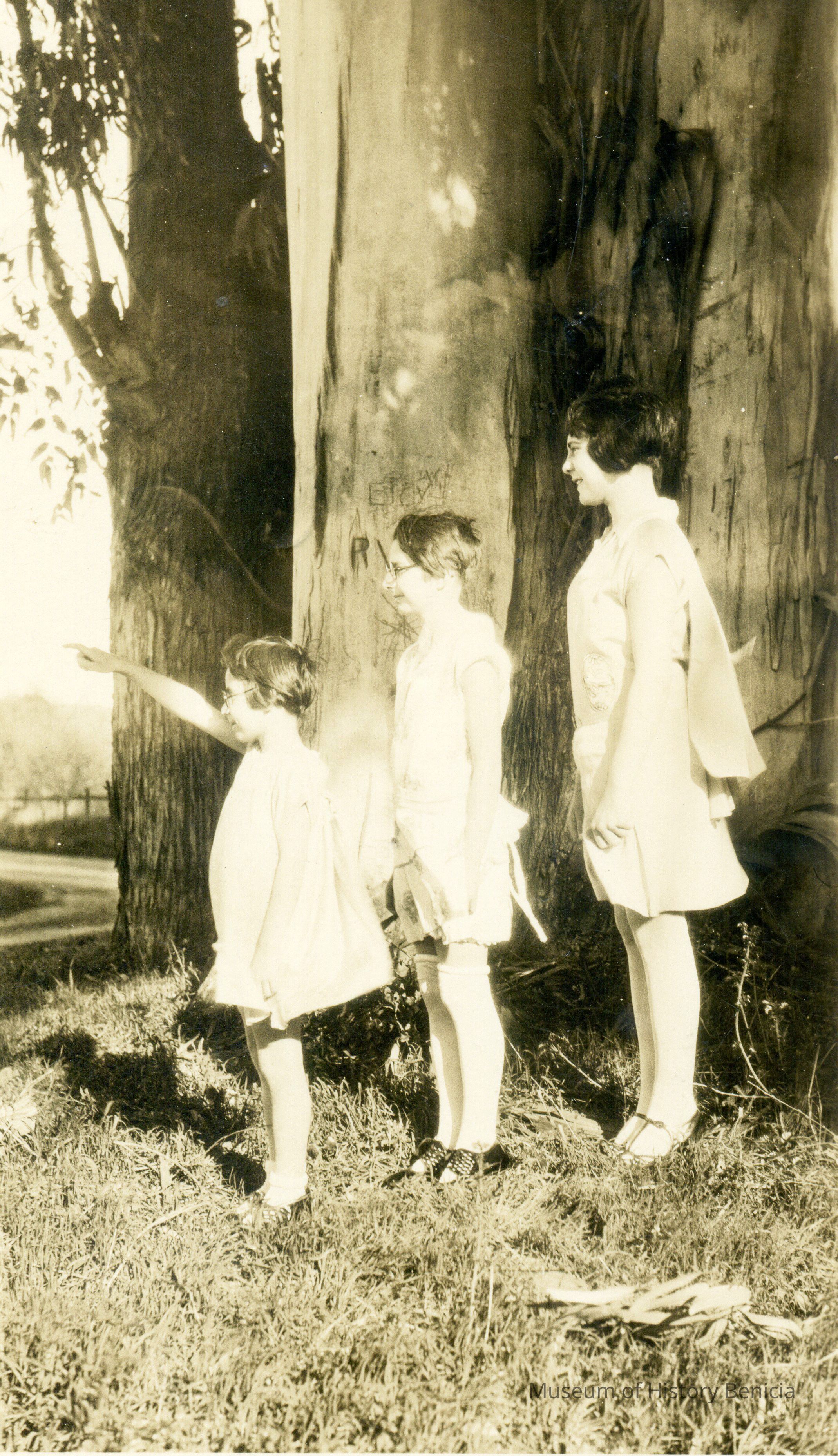 Girls by trees