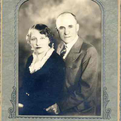 Photo of Mr and Mrs. Robert Mann in a cardboard photo holder.