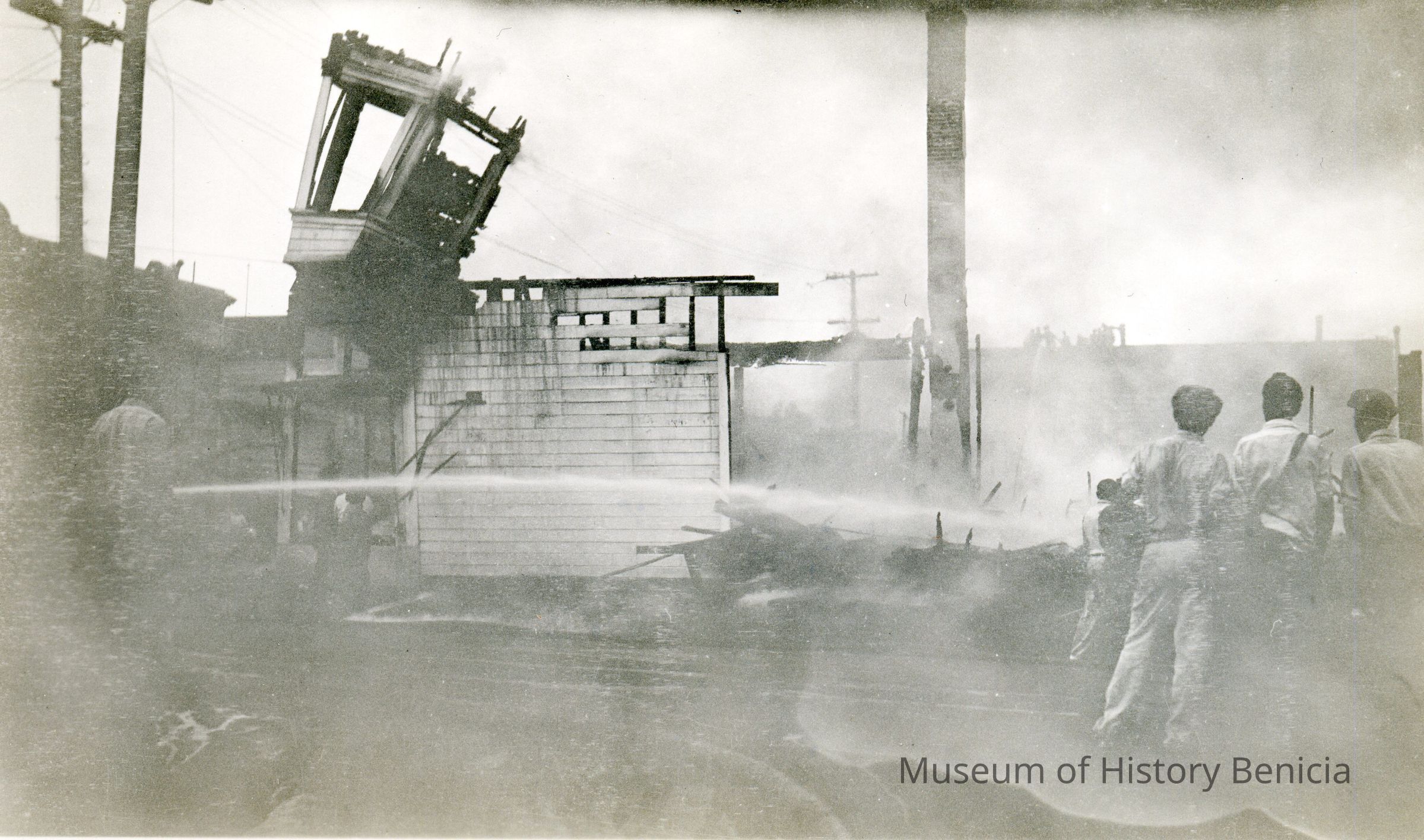 Photo of the Palace Hotel fire in 1932. This hotel was on First St. in Benicia.