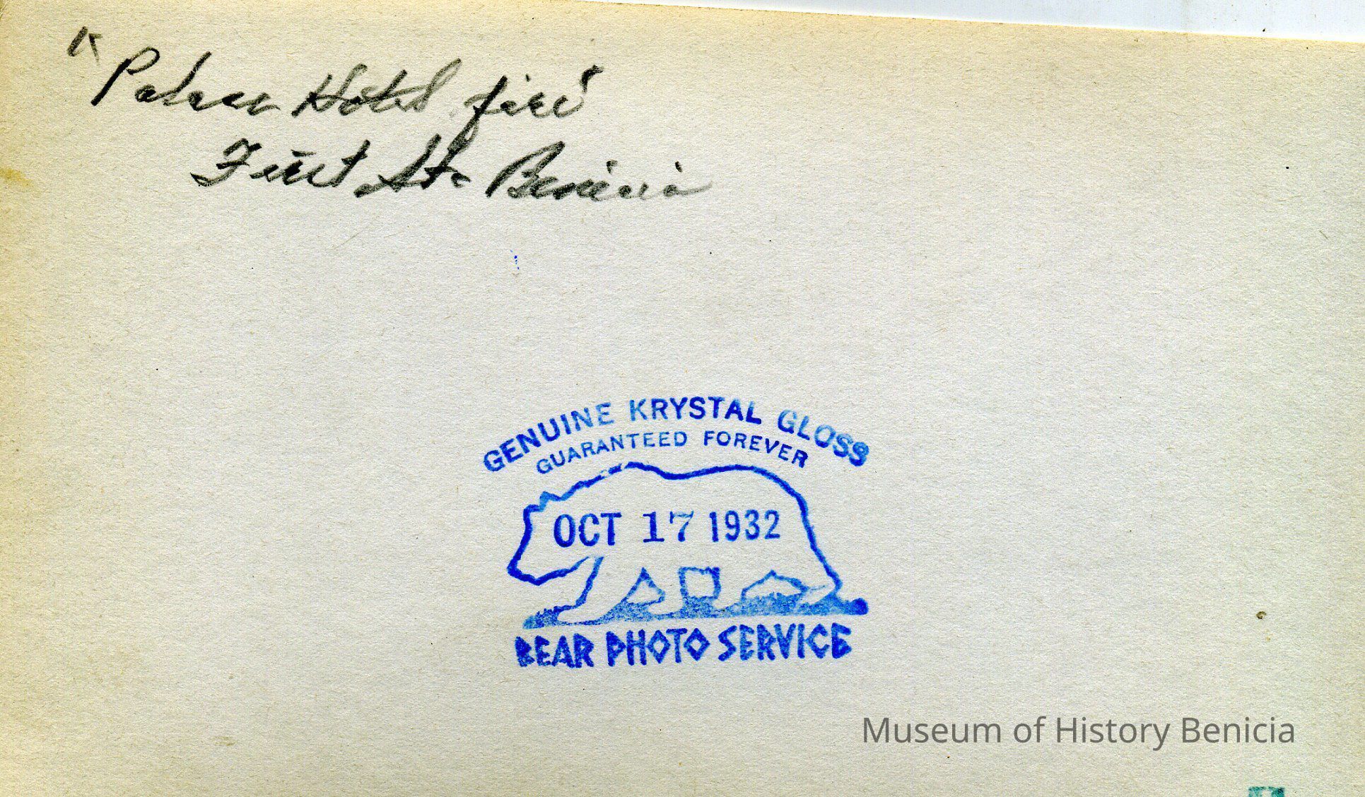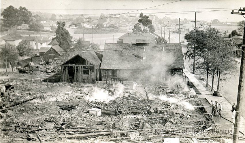 Photo of the Palace Hotel fire in 1932. This hotel was on First St. in Benicia