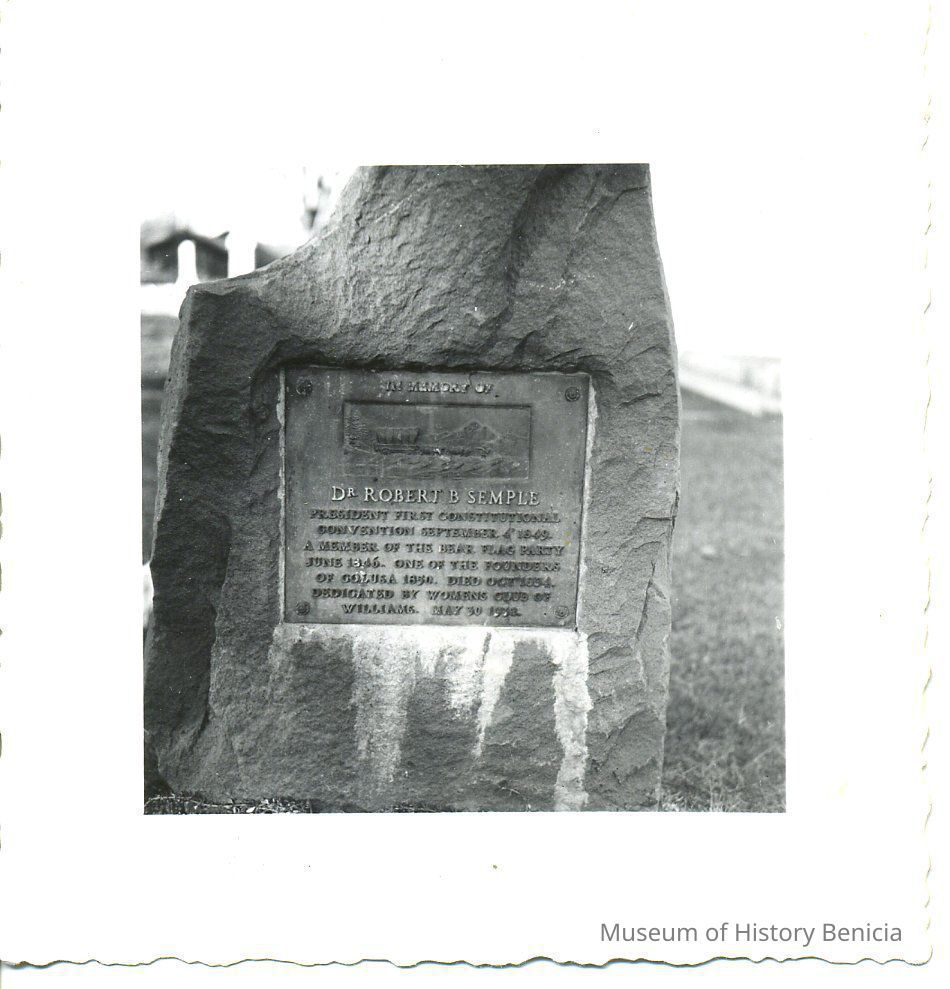 This is included in a collection of letters and documents for a forthcoming book published in 1950. Mr Wohlgemuth was contributing chapters to a four volume history of Free Masonry in California which was published in 1950. He was researching Dr. Robert Semple and events of that era. The volumes are available for reference in the Benicia Public Library.Collection
