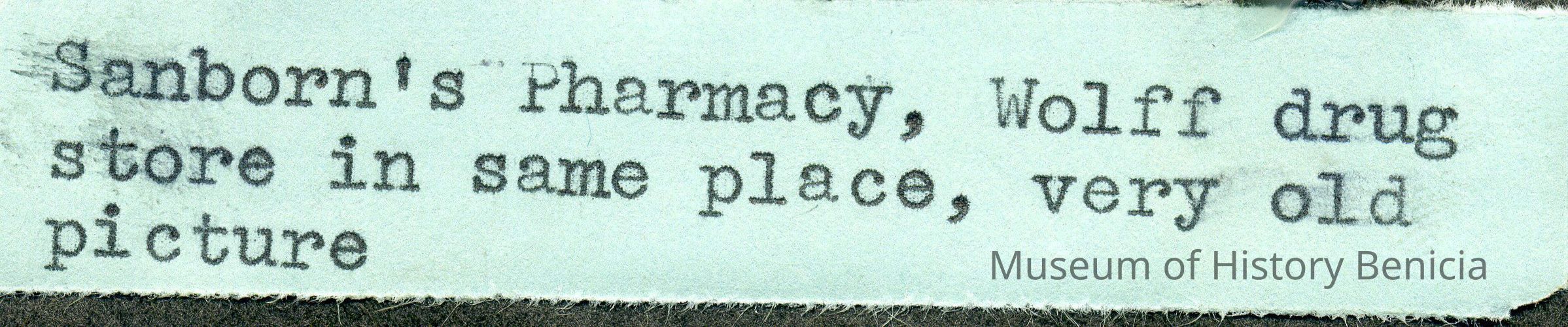 B/W photograph of Sanborn's Pharmacy (later Wolff Drug store).Collection