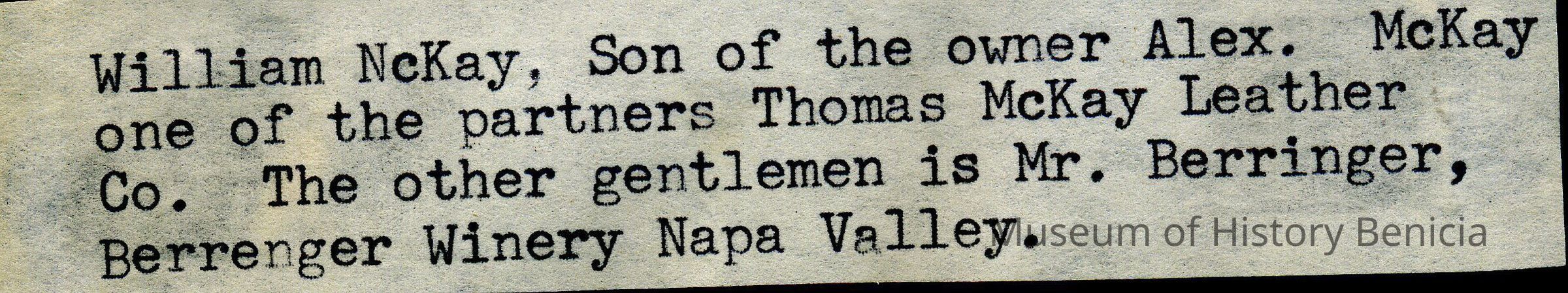 Attached is an article from the Benicia Hearld of 9/9/1937 regarding the McKay Tannery.Collection
