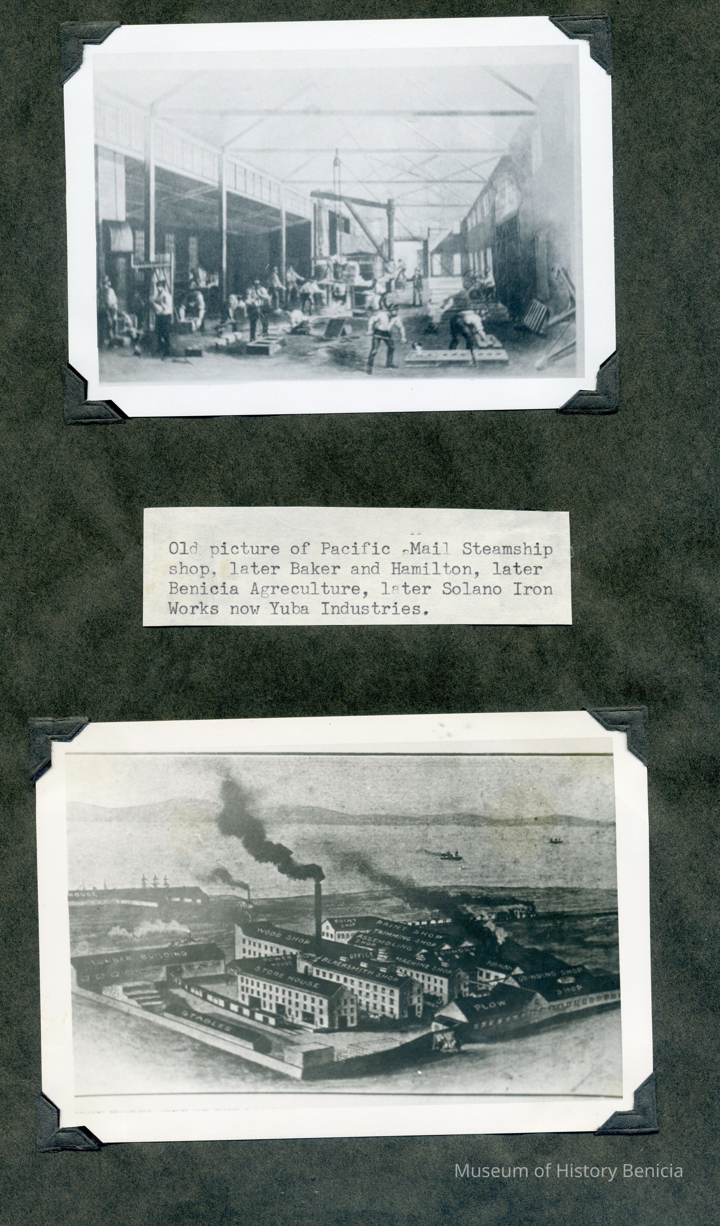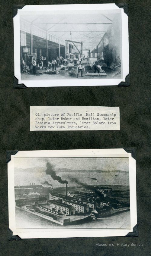 B/W photograph of Pacific Mail Steamship Co. later Baker & Hamilton, later Benicia Agricultural , later Solano Iron Works and in 1969 Yuba Industries.Collection