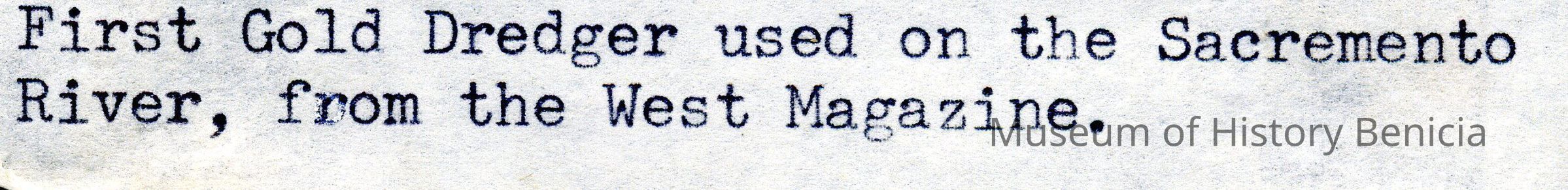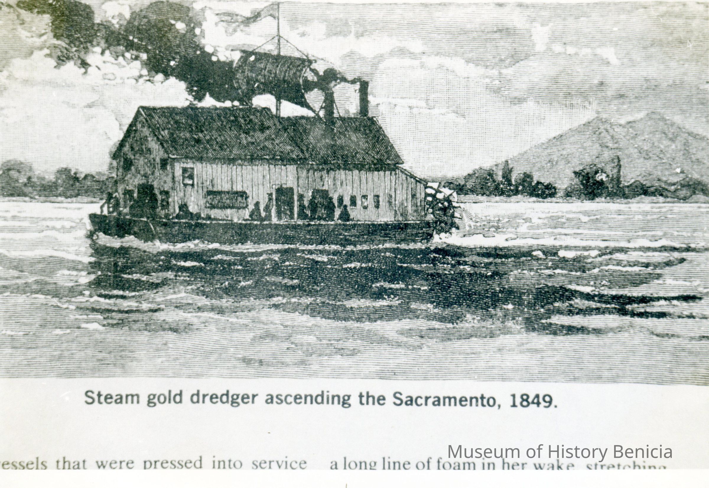 B/W photograph of first gold dredger used on the Sacramento River, from the West MagazineCollection