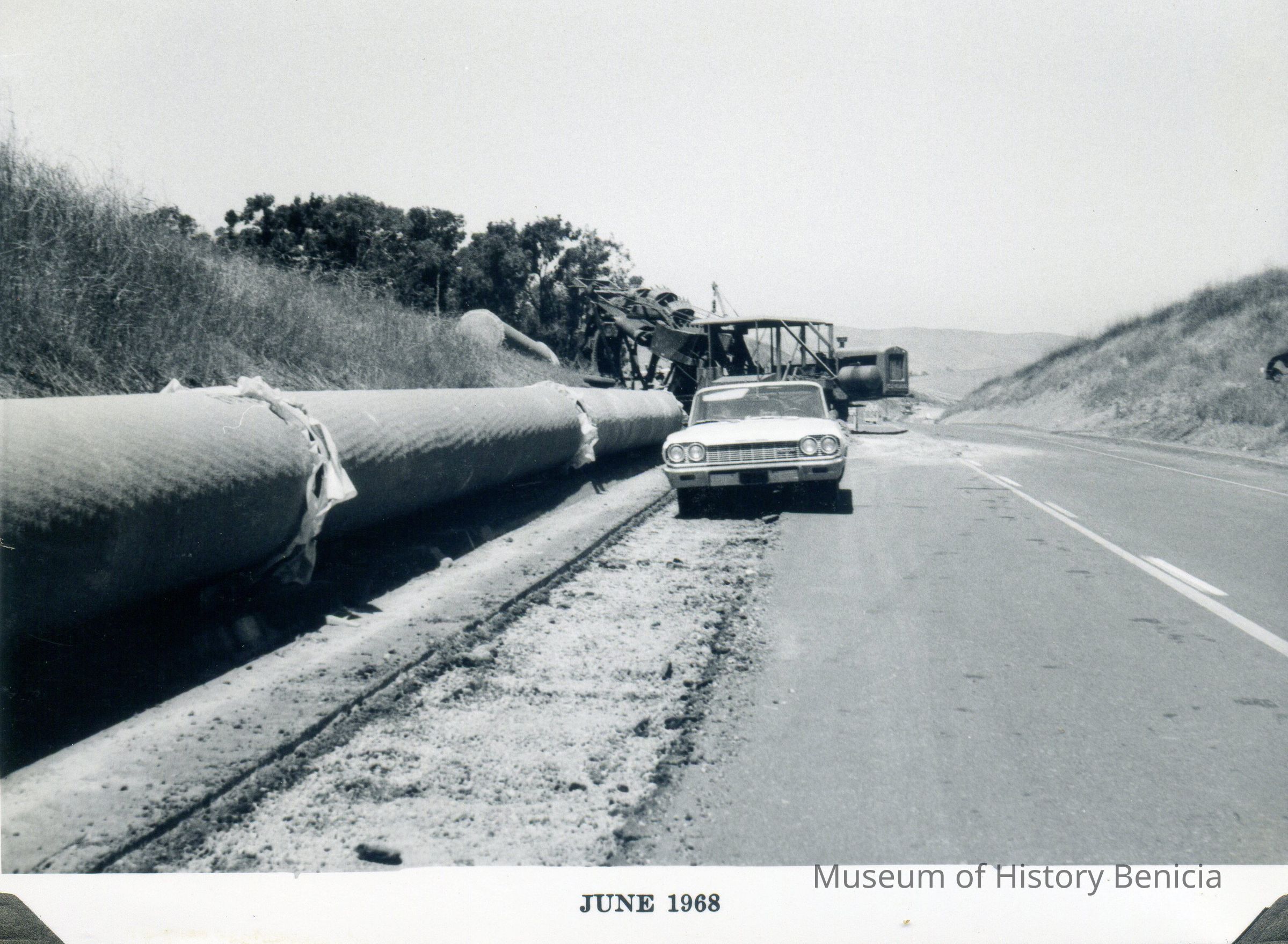 B/W photograph of water pipe that used to bring water from Cordelia to Benicia taken in June 1968Collection