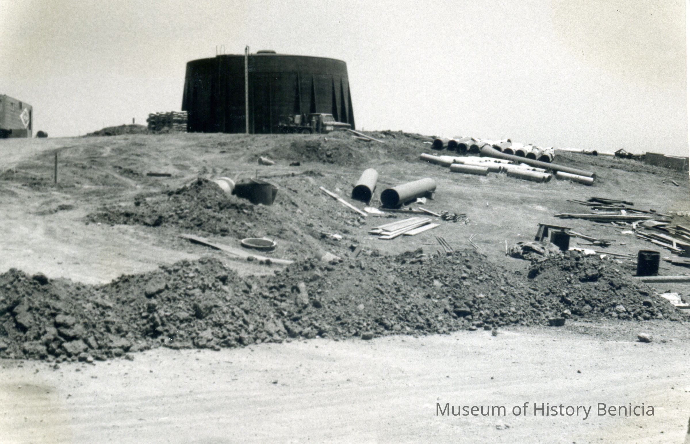 B/W photograph of water pipe and holding tank from Cordelia to BeniciaCollection