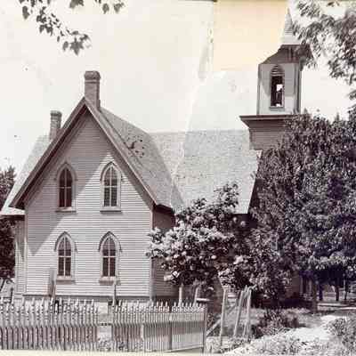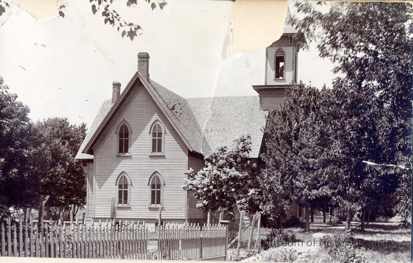 This is an item taken out of Vera Parker's scrapbook. A photo of the Presbyterian Church in Fairmont Nebraska.