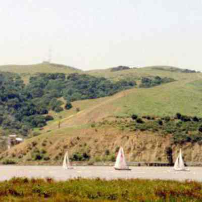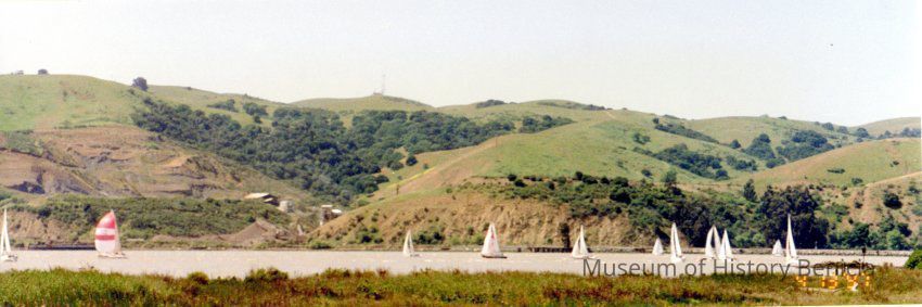 A panoramic photo of the Carquinez Straits during a Benicia Yacht Club event in 1997. The sailboats are in the foreground and on the far shore is the Port Costa Brickyard.Collection