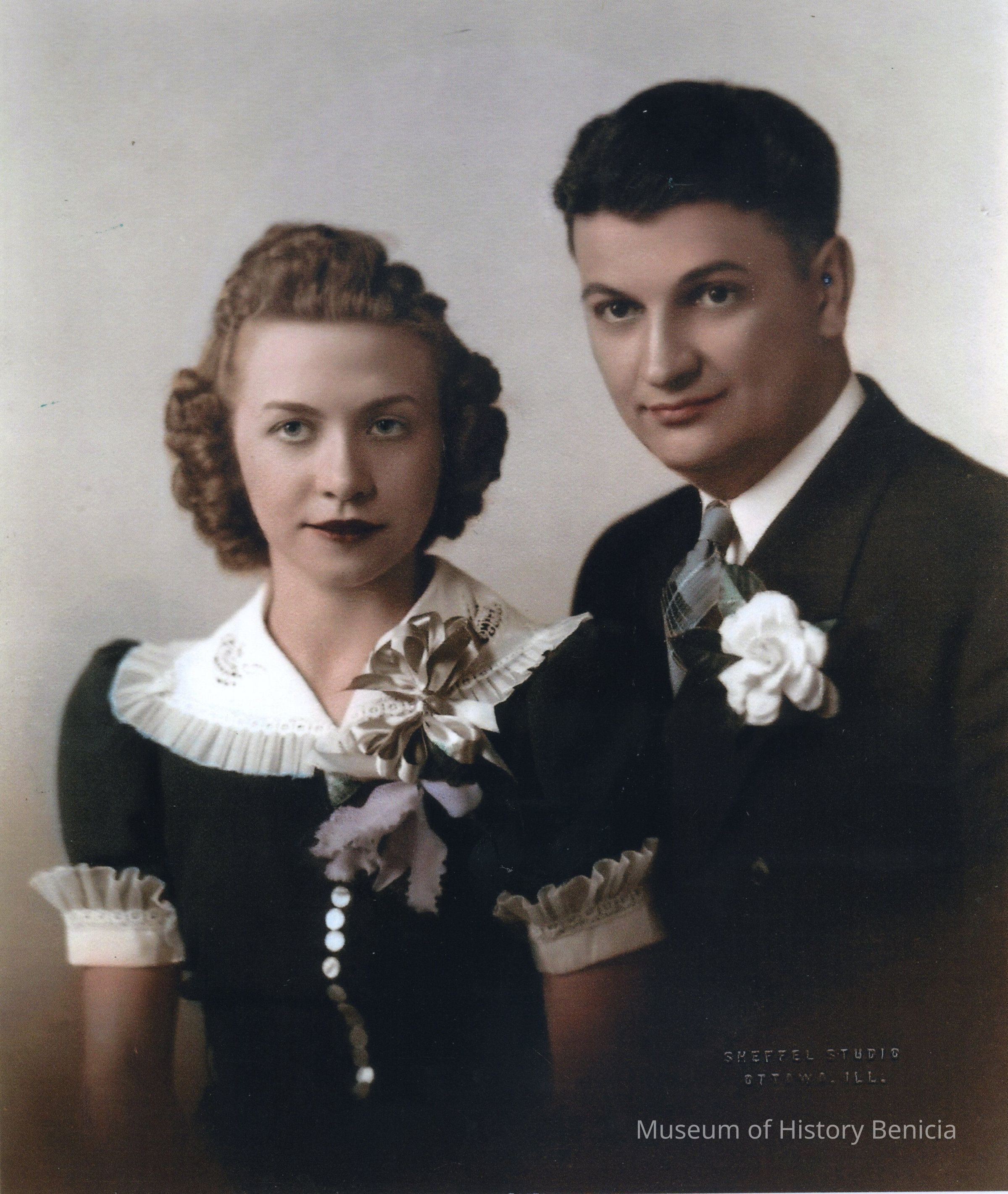 Tinted photograph, wedding portrait taken in Illinois in May 1941.