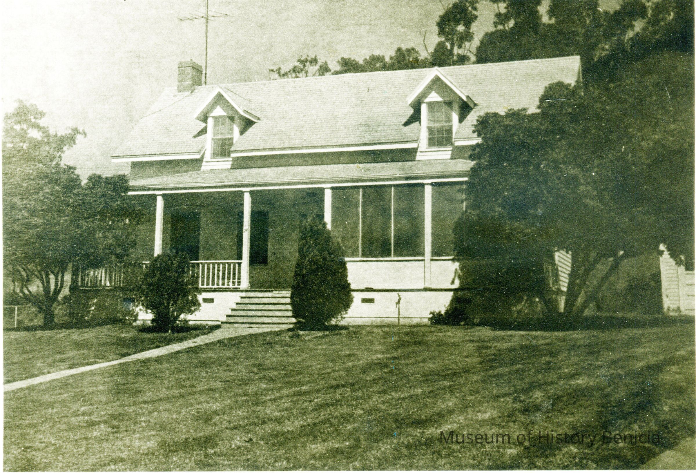 This is a photograph of building # 24 in the Benicia Arsenal. This building was built in 1868 according to the Arsenal Historical Record of Ordnance Buildings and was originally Non-Commissioned Officer's quarters. The back of the photo says it is Officer's quarters.Collection