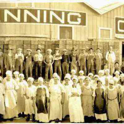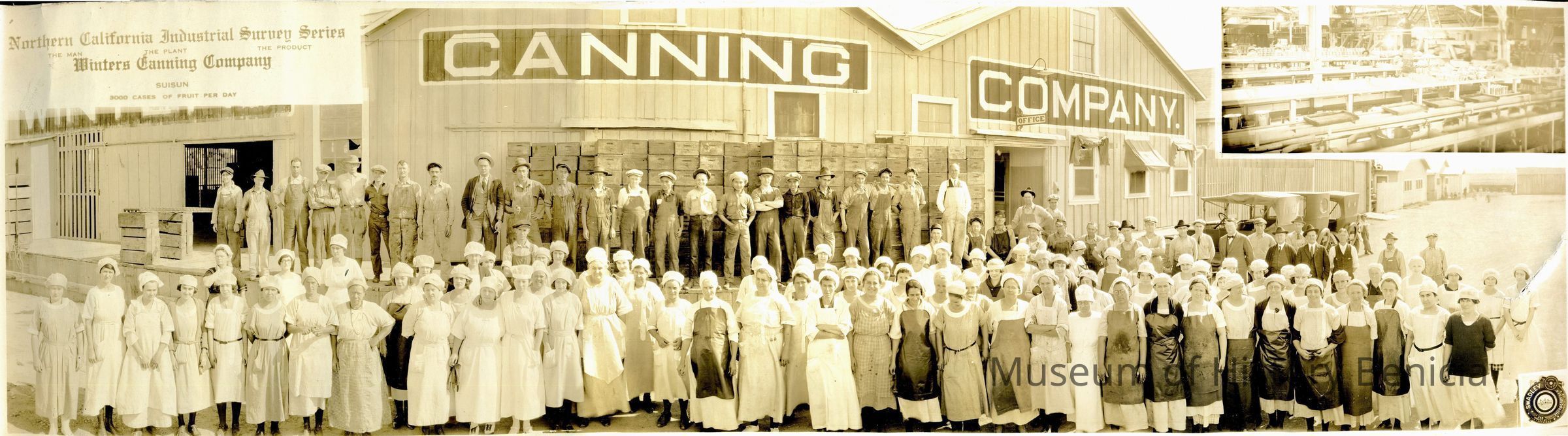 A panographic print of the workers at the Winters Canning Co. plant in Suisun.It has a message in the upper left hand corner stating it is for the Northern California Industrial Syurvey Series.Collection
