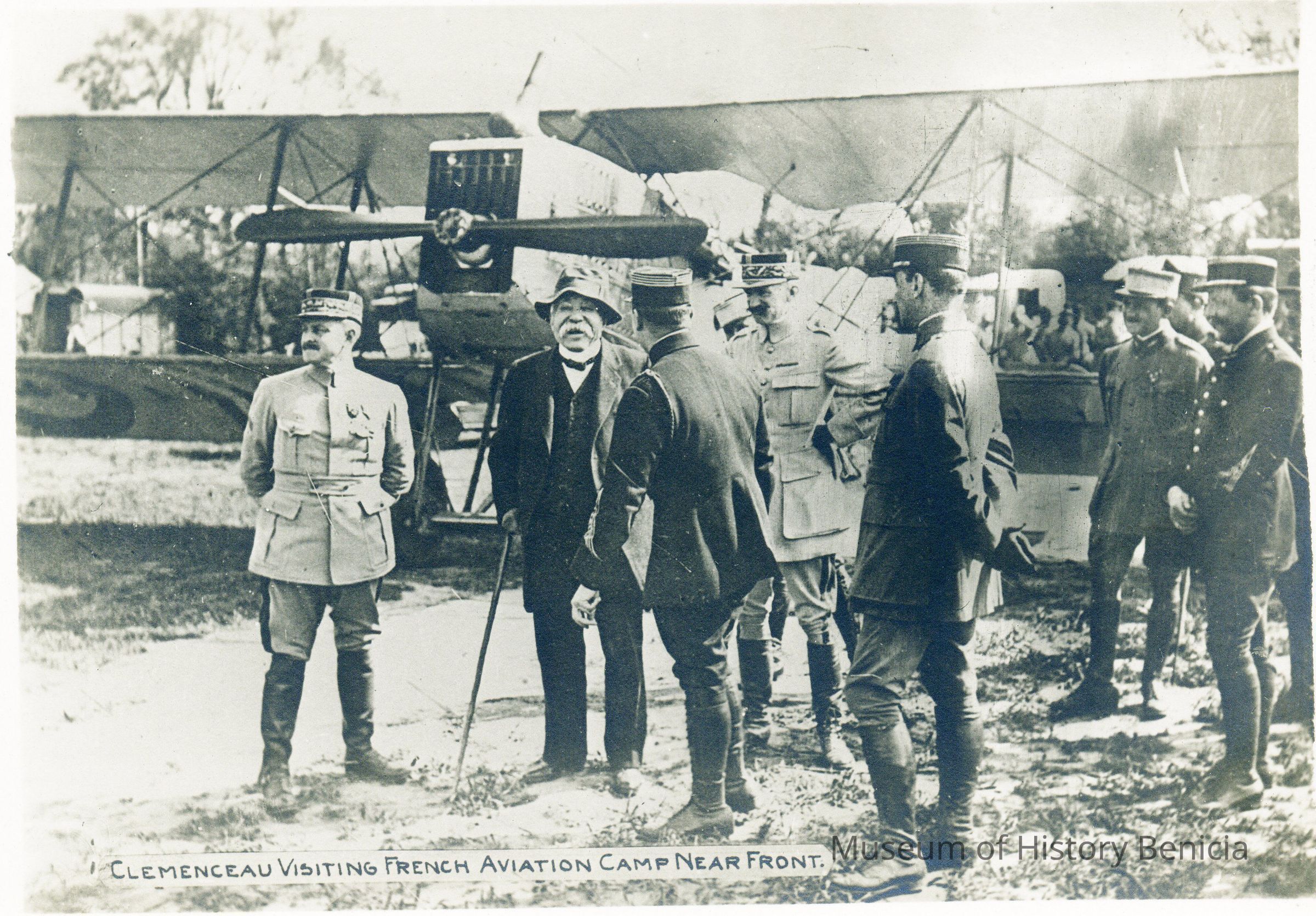 Commercial photograph of Clemenceau visiting French Aviation Camp near front.