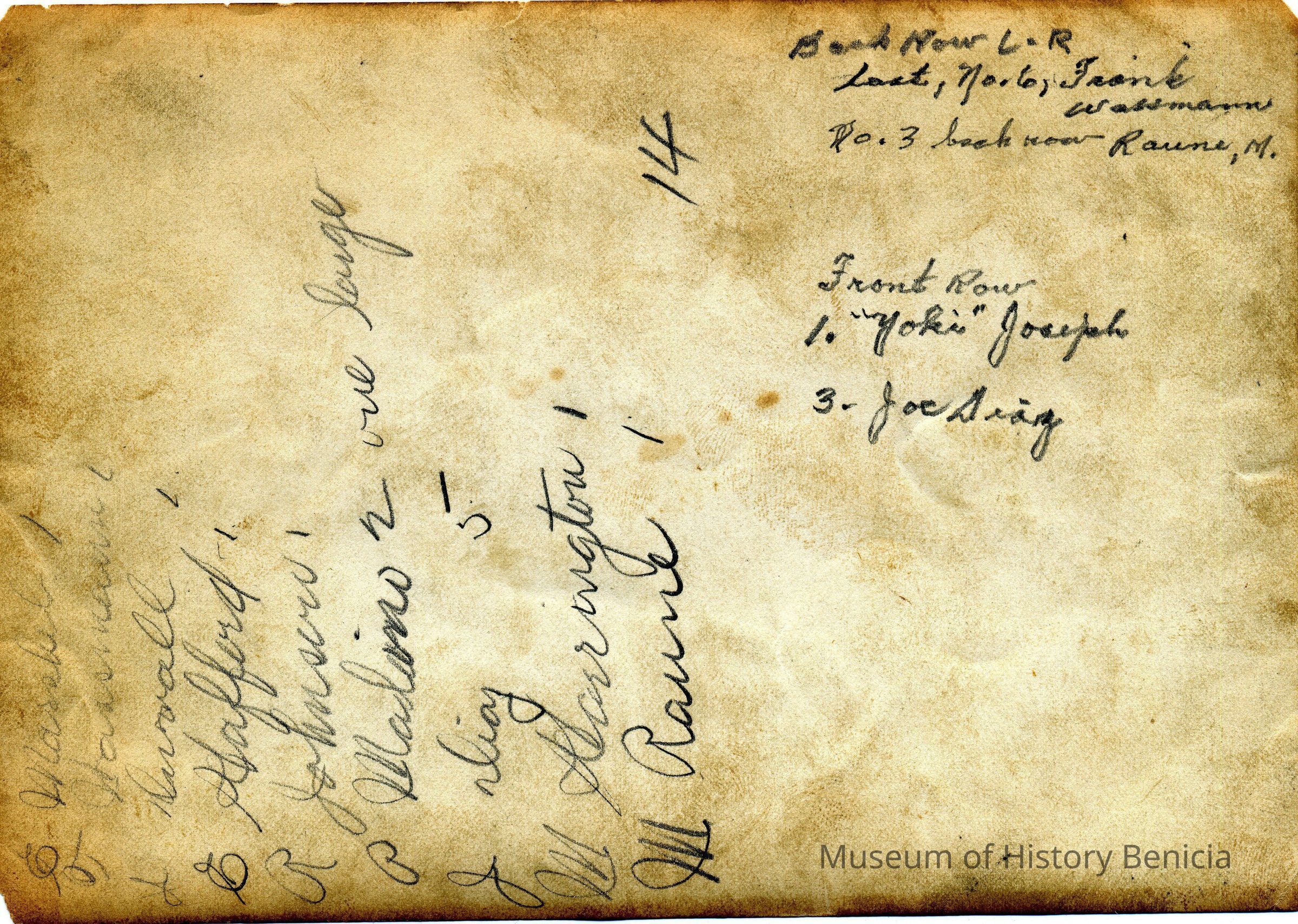 Joseph Diaz was born 12/24/1882 in California of Manuel R Diaz and Mary A DeGloria. He lived on East "G" st in Benicia and died 04/29/1953.Collection