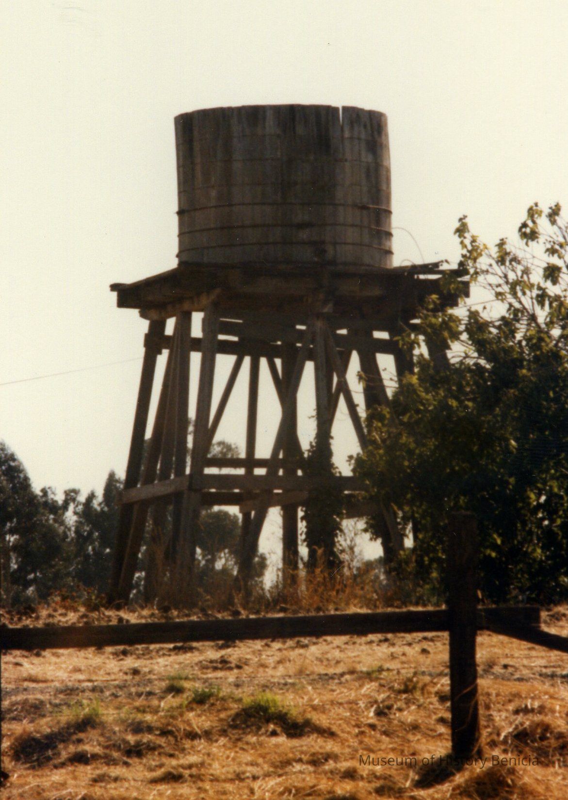 This 9.98 acre farm or ranch was in the 1850's-60's part of the huge S. C. Hastings farm which in 1867 produced wheat and hay. In 1878 most of the Hastings property was owned by Henry Borges who was listed in the 1886 voter register as a farmer from Germany, naturalized 1859. Between 1880 and 1907 the large tract was apparently subdivided into smaller parcels. In 1919 according to City tax appraisal survey, most of the buildings were @ 30 years old and were owned by F.E. Newman who may have operated a chicken ranch on the site. Subsequent owners other than the Leigh family are unknown at this time [1986] but the land seems to have been in continuous use as a ranch or a farm since 1850's. Today the property is completely surrounded by dense build-up. It is an island flanked by a service station, motel under construction, single-family homes and a freeway. The olive tree grove and the tower/tank house are the most historically significant aspects of the property. It may be feasible to relocate the water tower if it can not remain where it is. The grove and tower offer historical focal points and recall Benicia's once vital agricultural past. The mature olive trees are visually significant from the freeway. [unknown what happened to the water tower]Collection